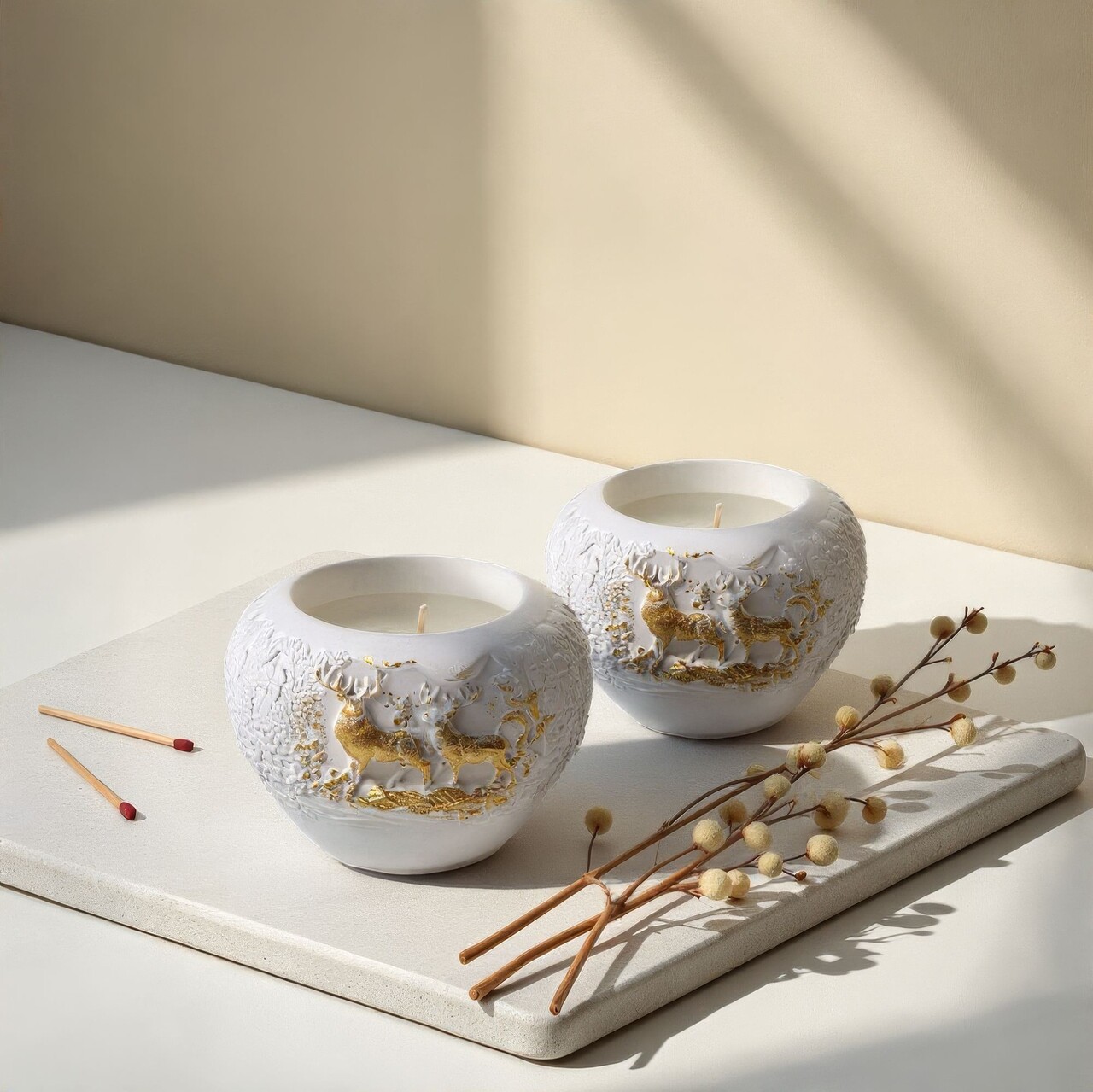 Set 2 lumanari, Yılbaşı Geyik Yaldızlı, Alb