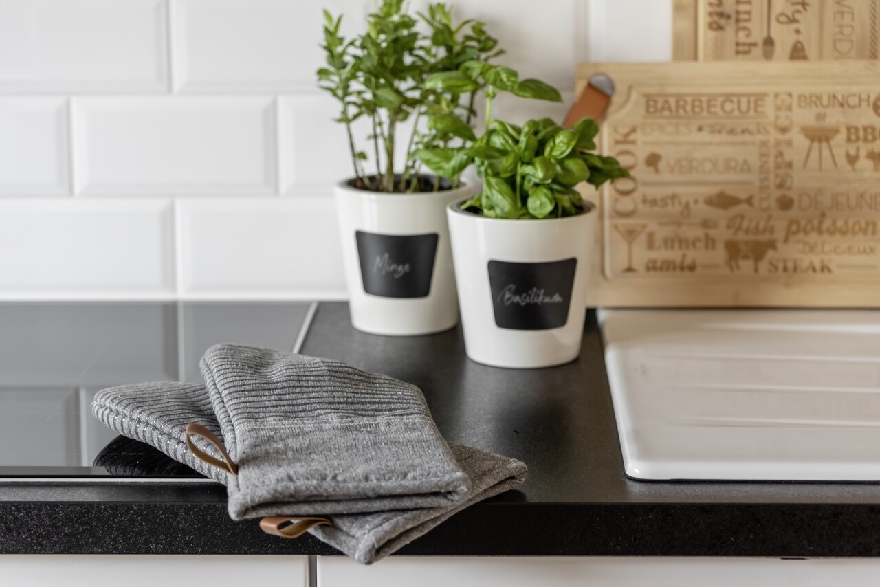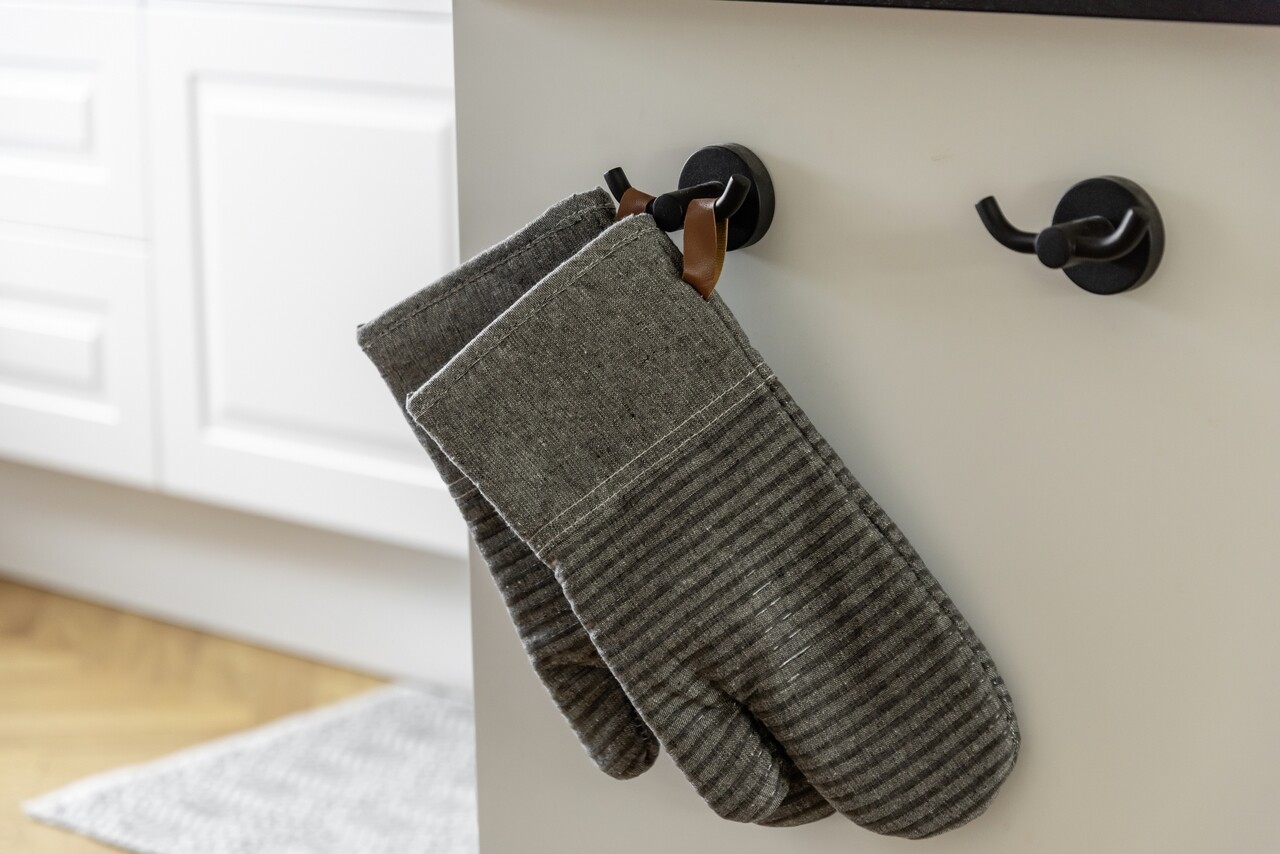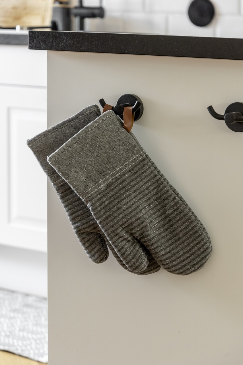Set 2 manusi de bucatarie, Wenko, Ada Stripes, 17 x 33 x 3 cm, bumbac/poliester, gri
