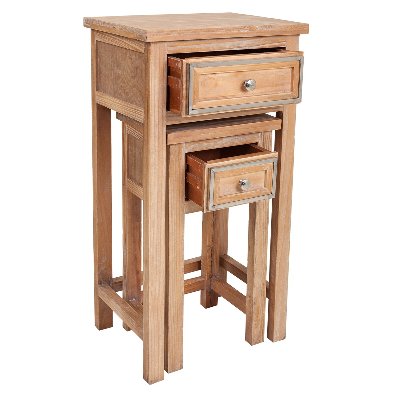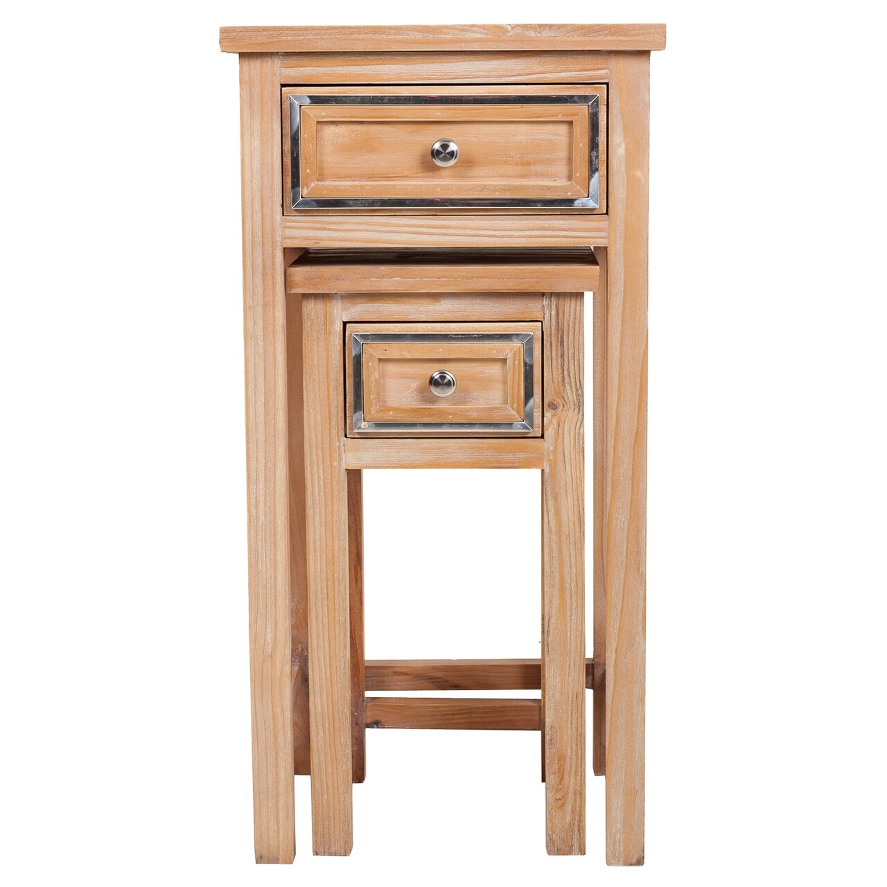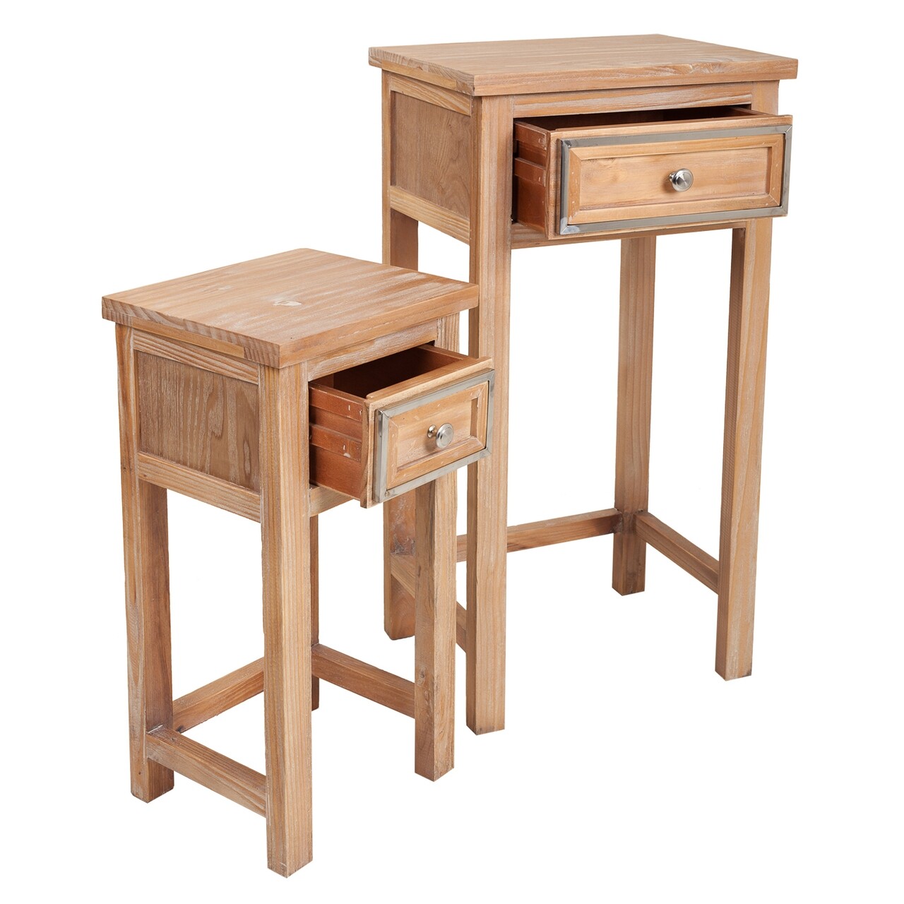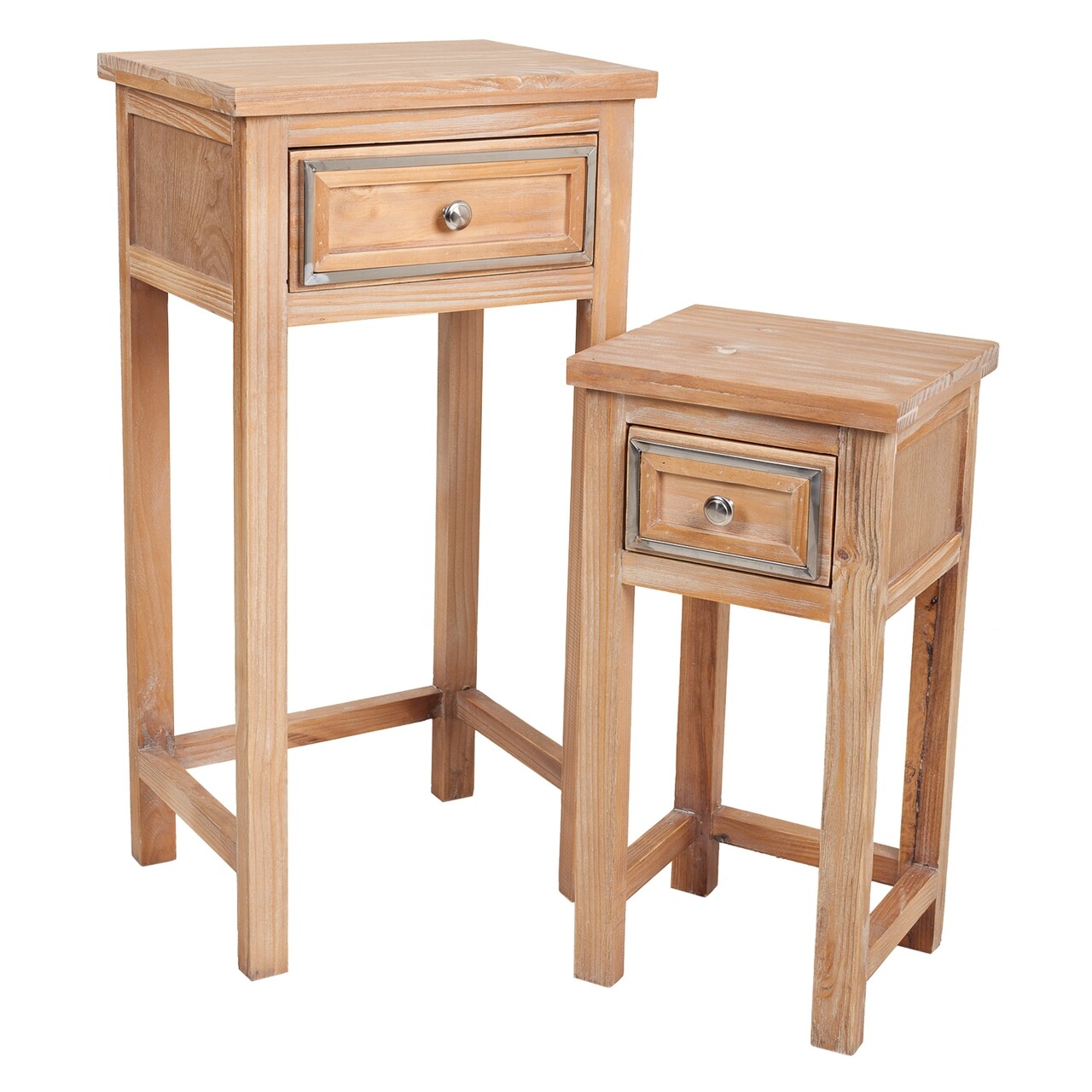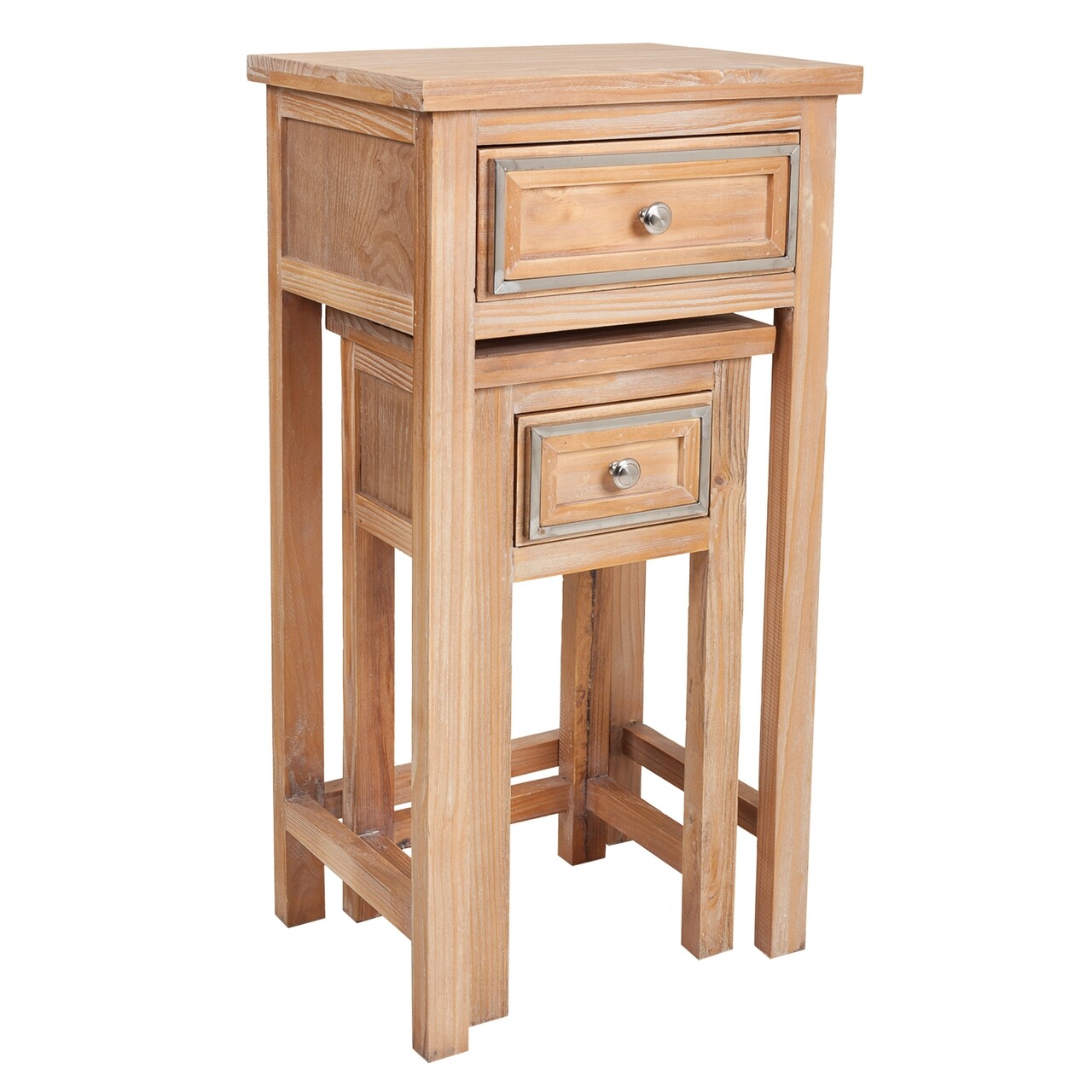 Set 2 masute cu sertar, Creaciones Meng, lemn de pin/inox, natural