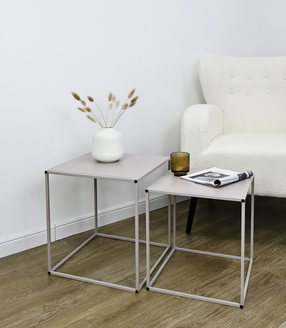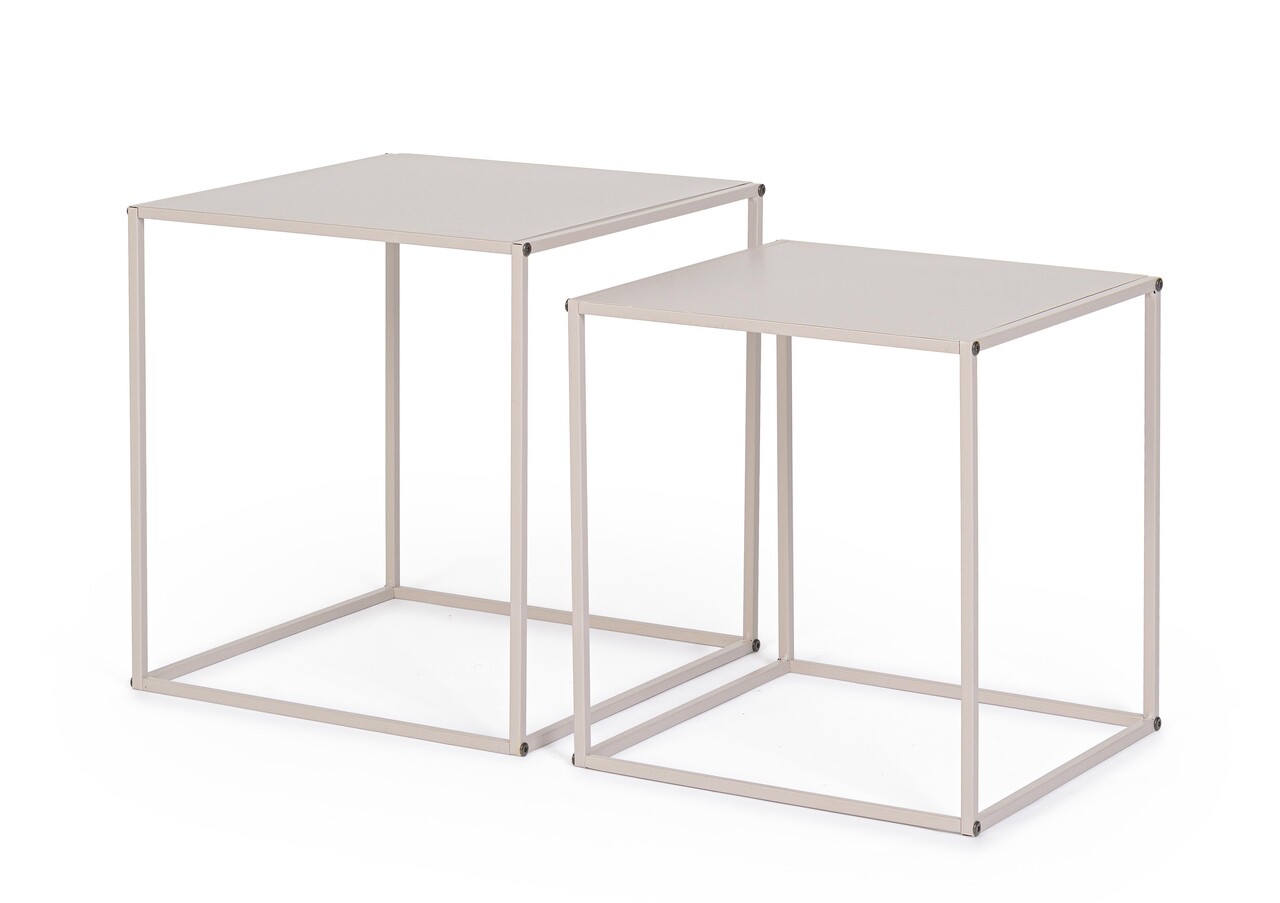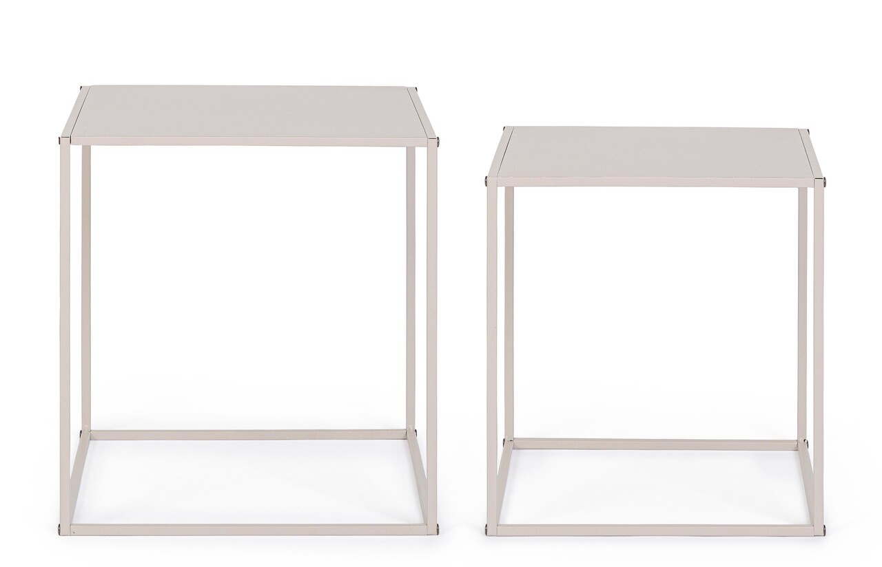 Set 2 masute de cafea Alrik, Bizzotto, 34x34x37 cm/38x38x41 cm, otel, bej