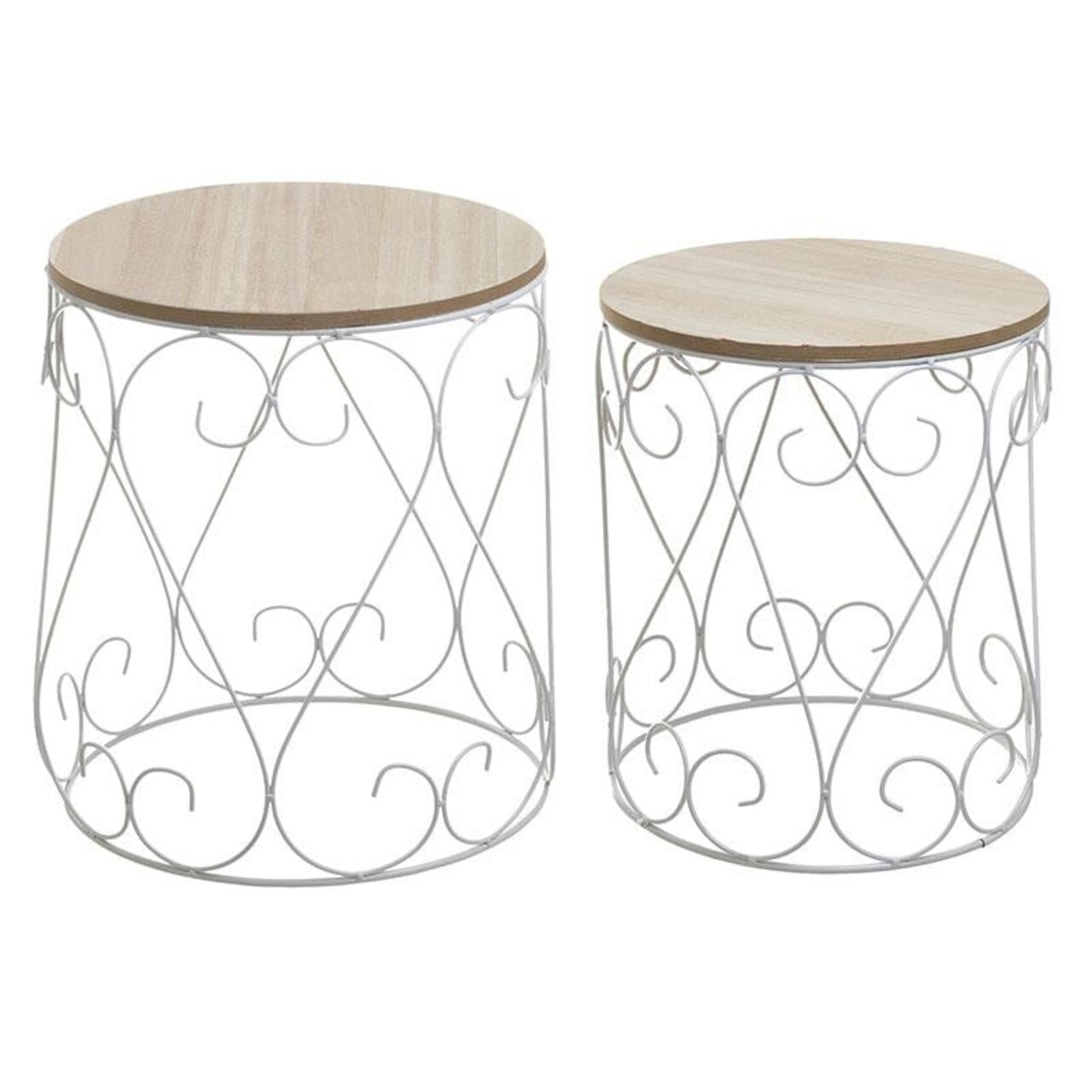 Set 2 masute de cafea cu spatiu de depozitare InArt, lem/metal, alb