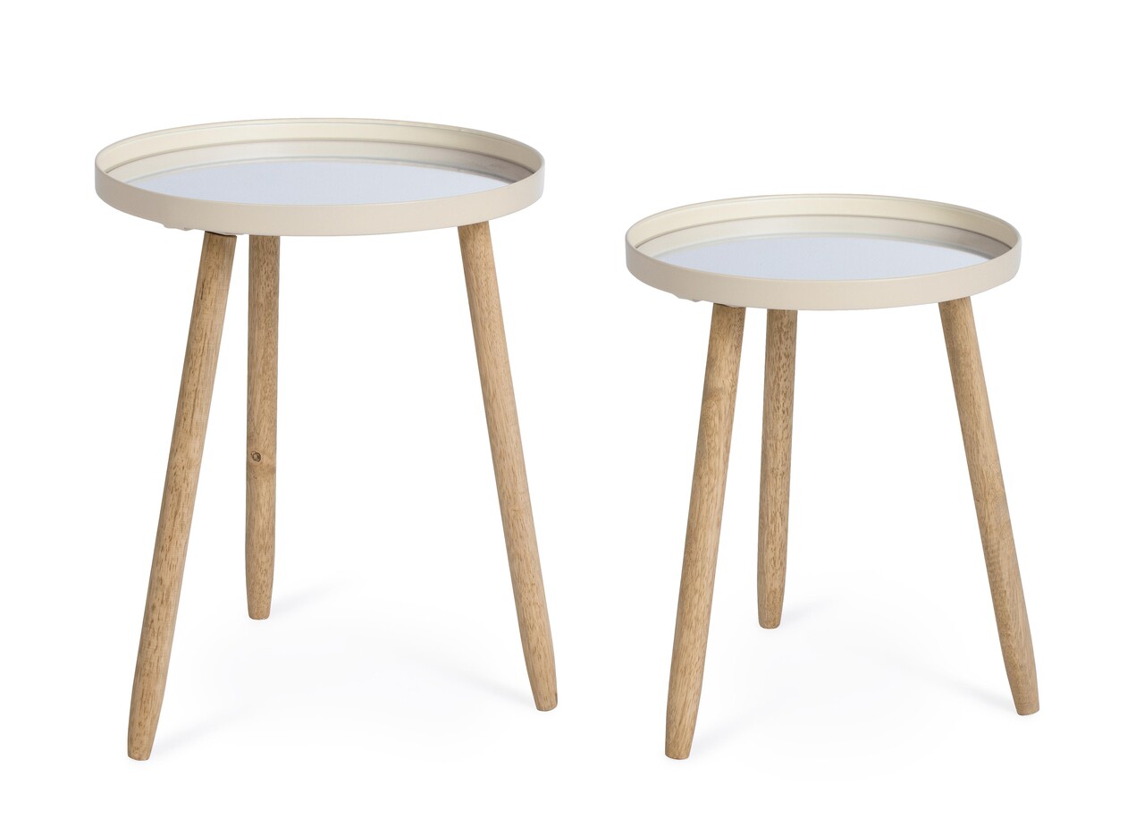 Set 2 masute de cafea Edvard, Bizzotto, 35.5x44 cm/40x51 cm, lemn de cauciuc/otel, blat din oglinda, ivoriu