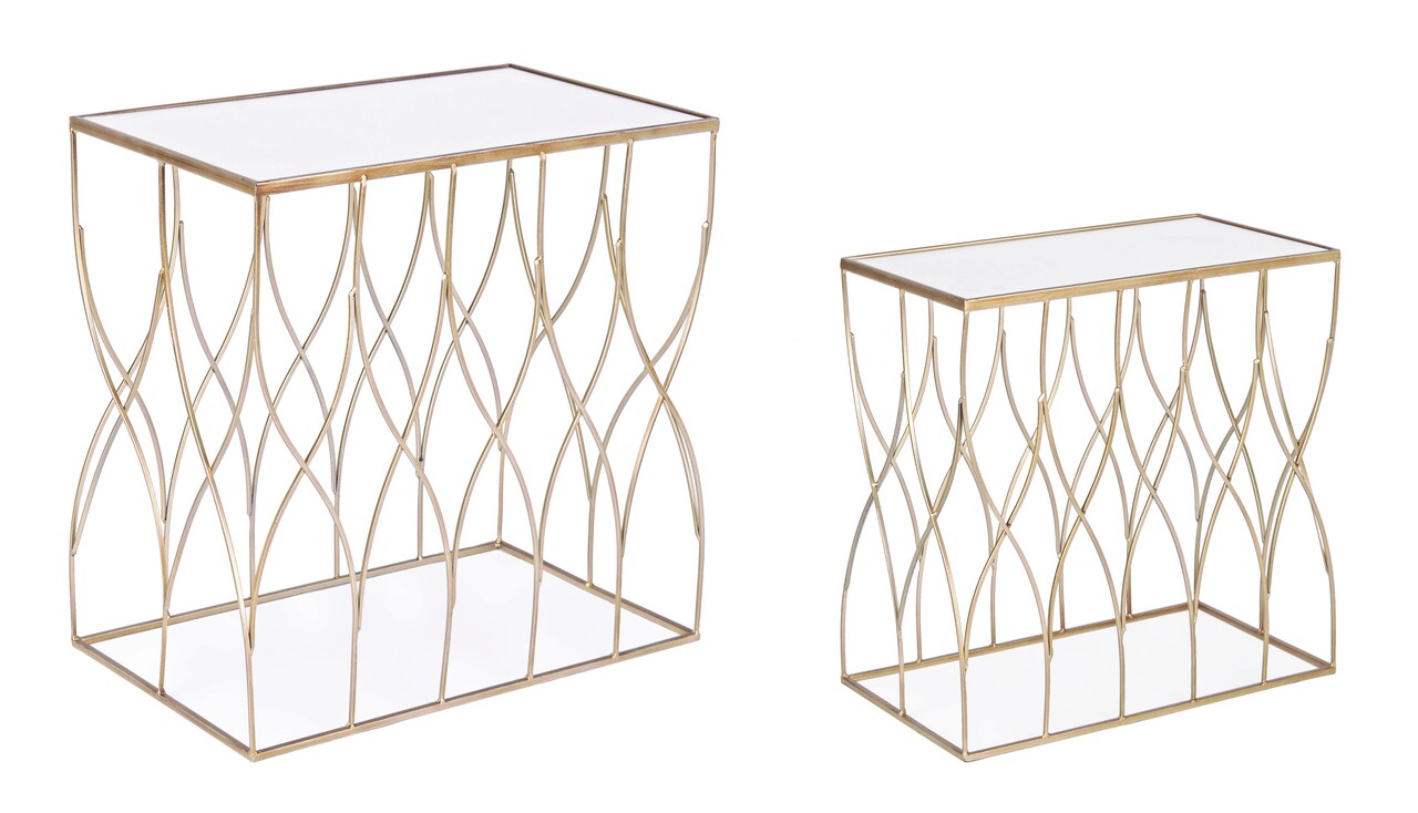 Set 2 masute de cafea Elenor, Bizzotto, 56 x 35.5 x 56 cm, otel/sticla, auriu