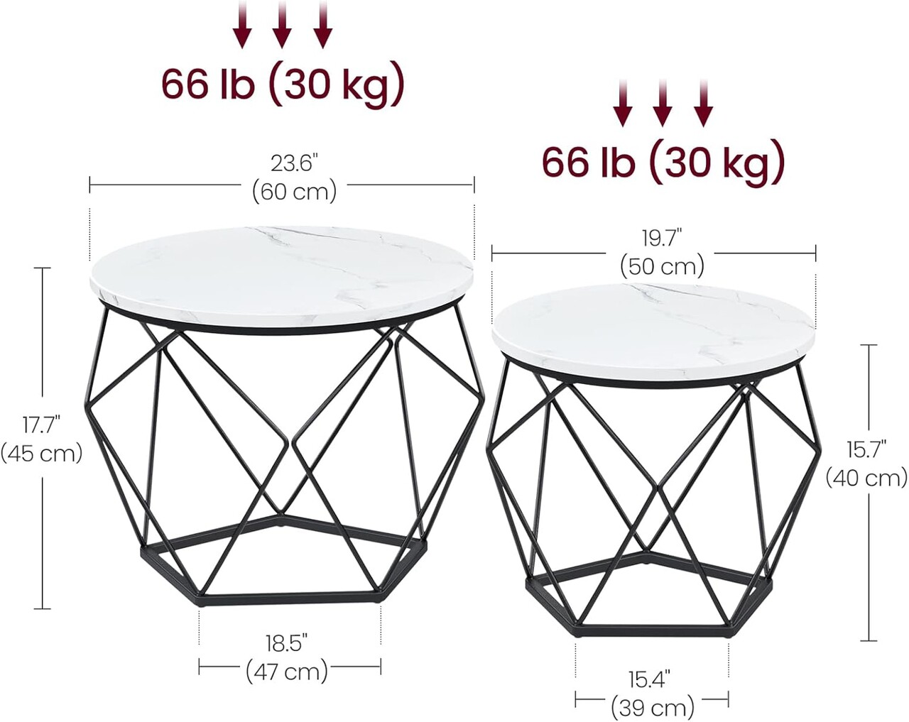Stabile si puternice Amestecul de PAL de calitate si cadrul robust din otel face ca acest set de mese laterale sa fie stabil, astfel incat sa nu se clatine de fiecare data cand va ridicati ceasca de cafea. Fiecare masuta poate sustine pana la 30 kg.