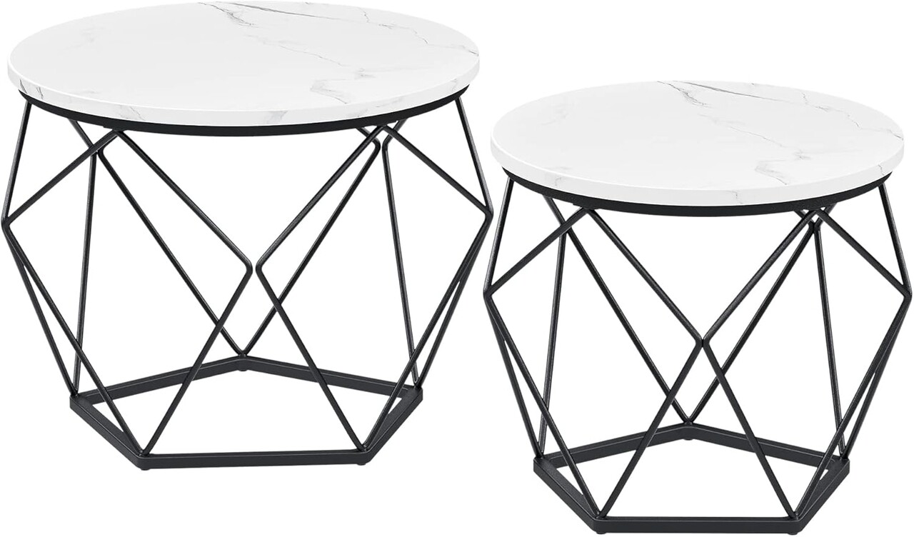 Set 2 masute de cafea Modern, Vasagle, blat detasabil, 60x45 cm, max 30 kg, otel/PAL, alb/negru