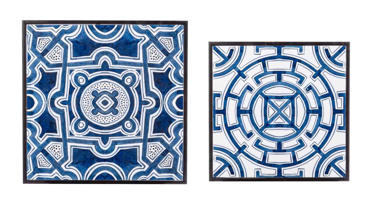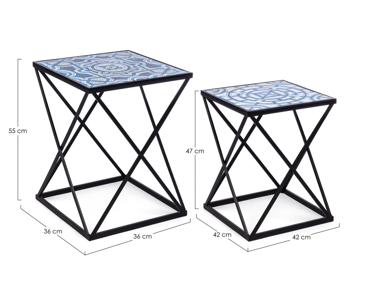 Set 2 masute de cafea Neapolis, Bizzotto, 36x36x47 cm/42x42x55 cm, otel/MDF, albastru