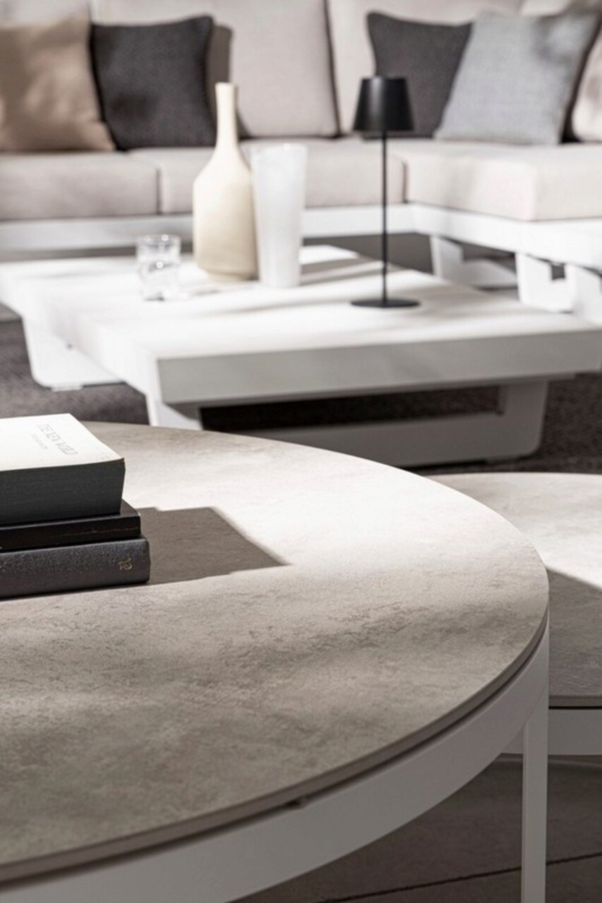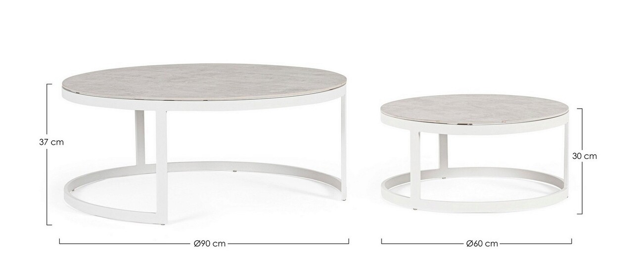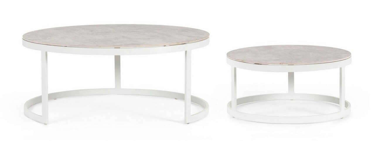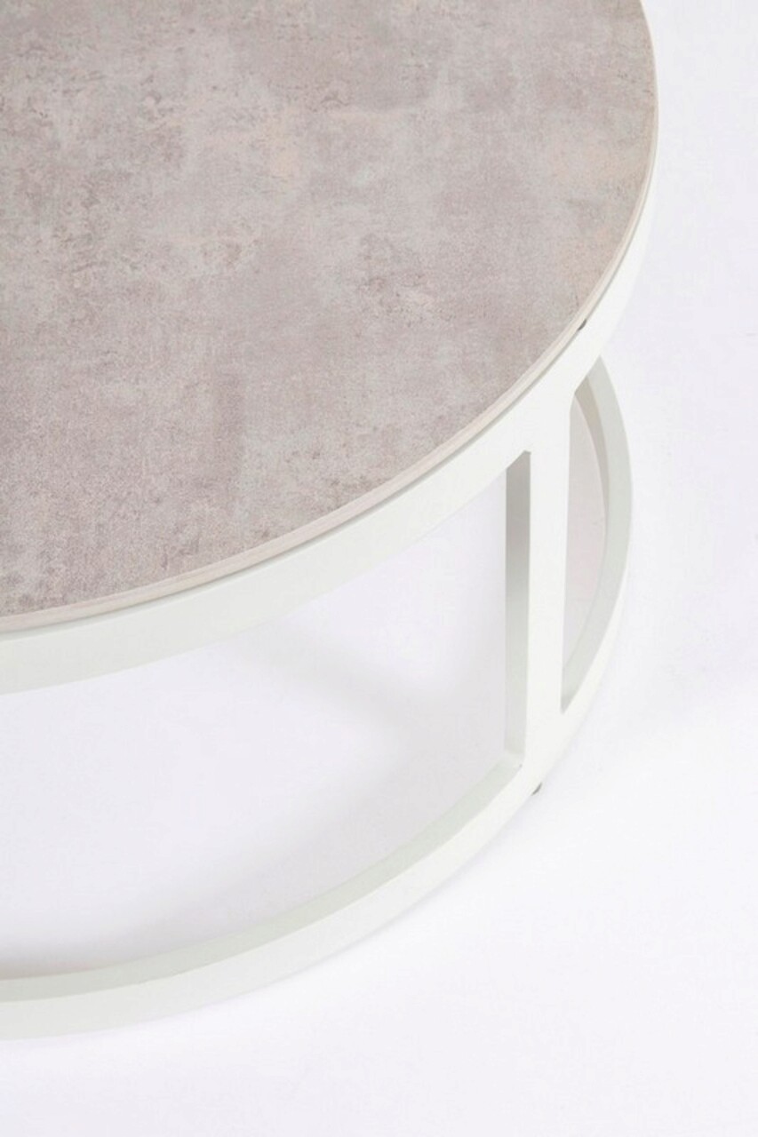 Set 2 masute de cafea pentru gradina/terasa Infinity, Bizzotto, Ø90 x 37 cm, aluminiu/ceramica, alb