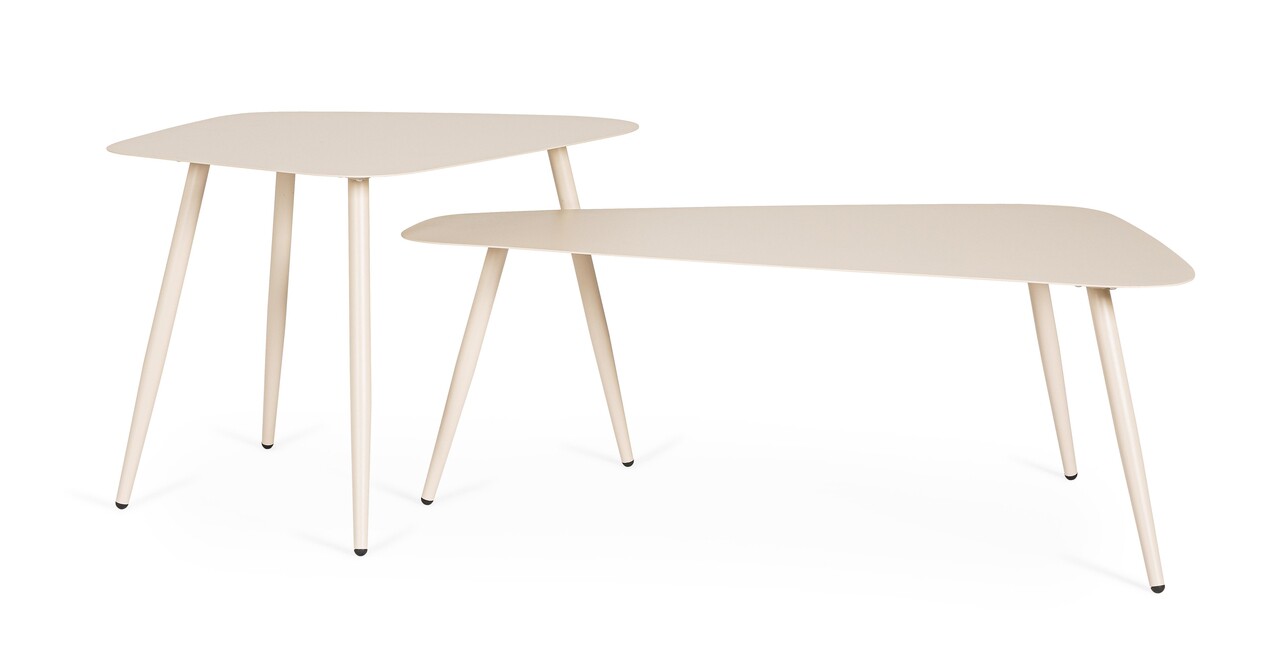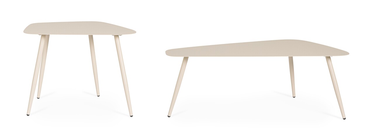 Set 2 masute de cafea pentru gradina/terasa Yvonne, Bizzotto, 54.5x52.5x45 cm/96x55x35 cm, otel, invelis e-coating, finisaj mat, sampanie