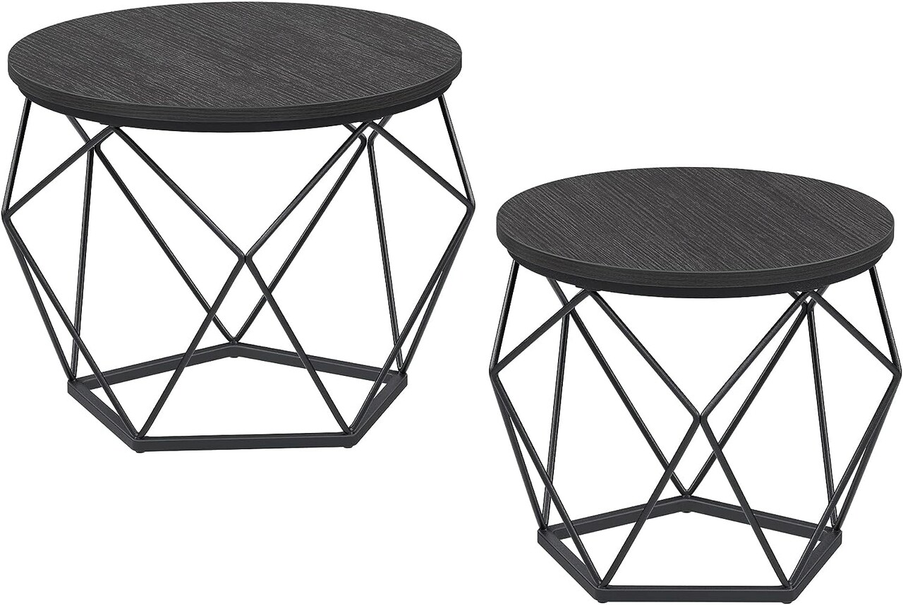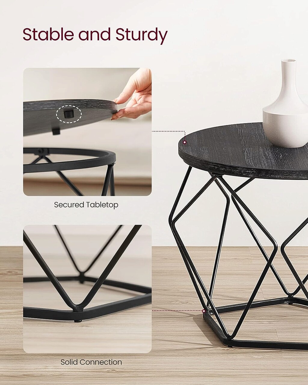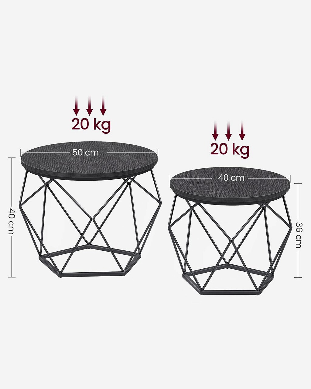 Set 2 masute de cafea Vasagle Geometric Round, Ø50 x 40 cm, PAL/otel, negru