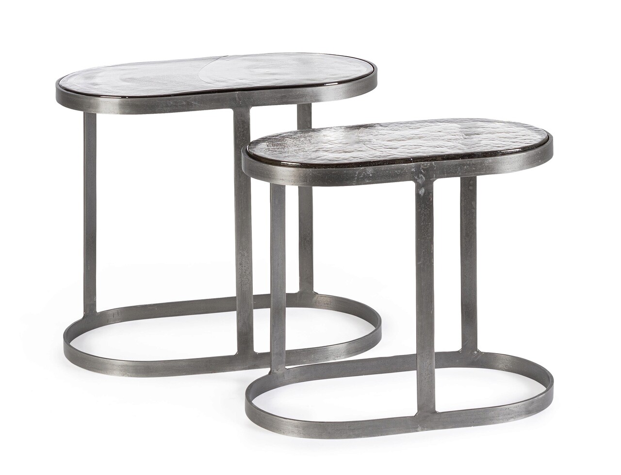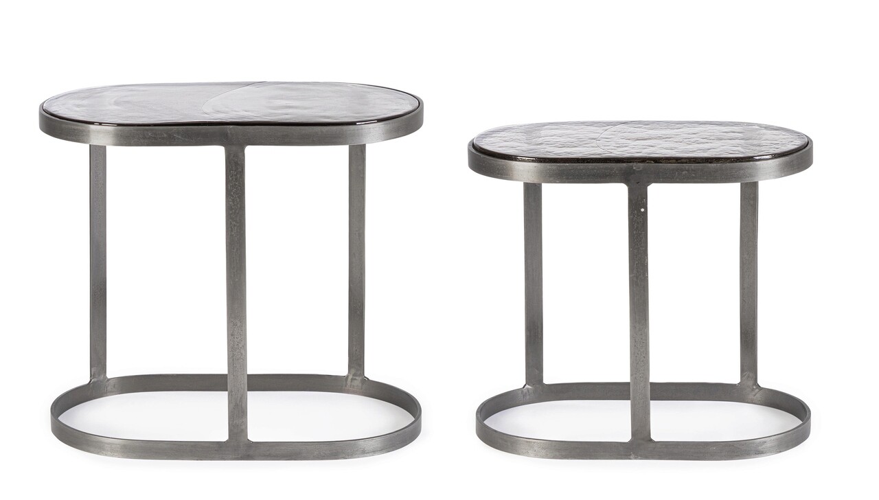 Set 2 masute de cafea Zayla, Bizzotto, 50x34x50 cm, otel/blat din sticla handmade
