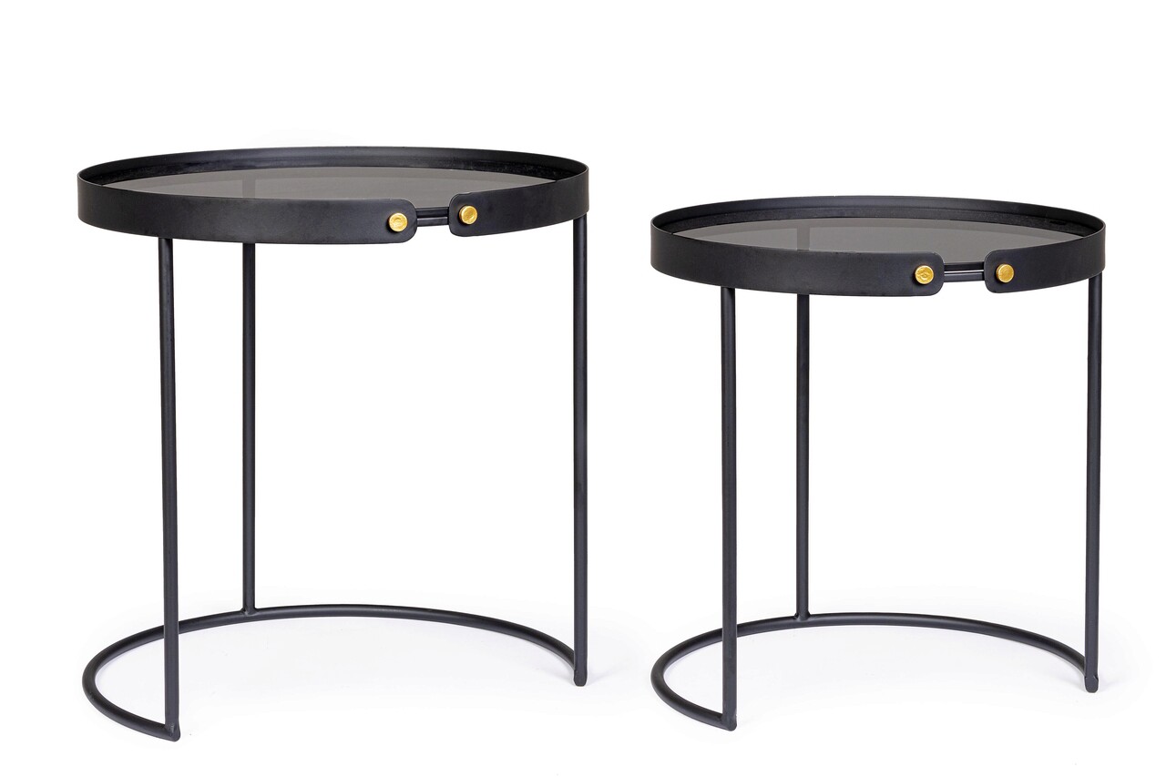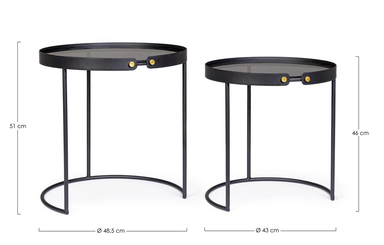 Set 2 masute de cafea Zeina Round, Bizzotto, Ø48.5 x 51 cm, otel/sticla temperata