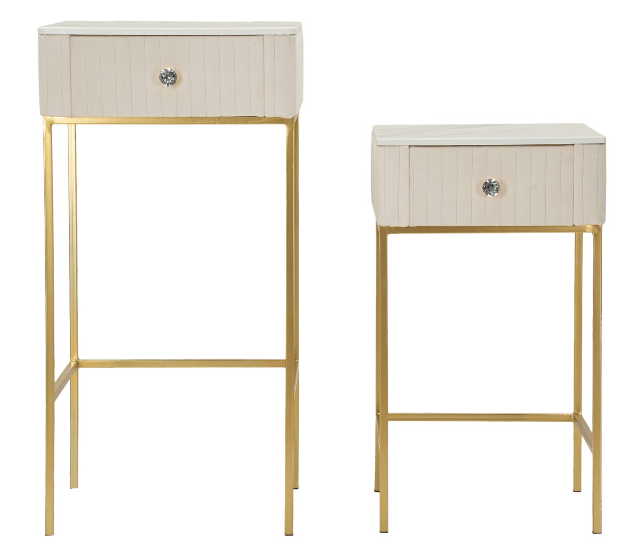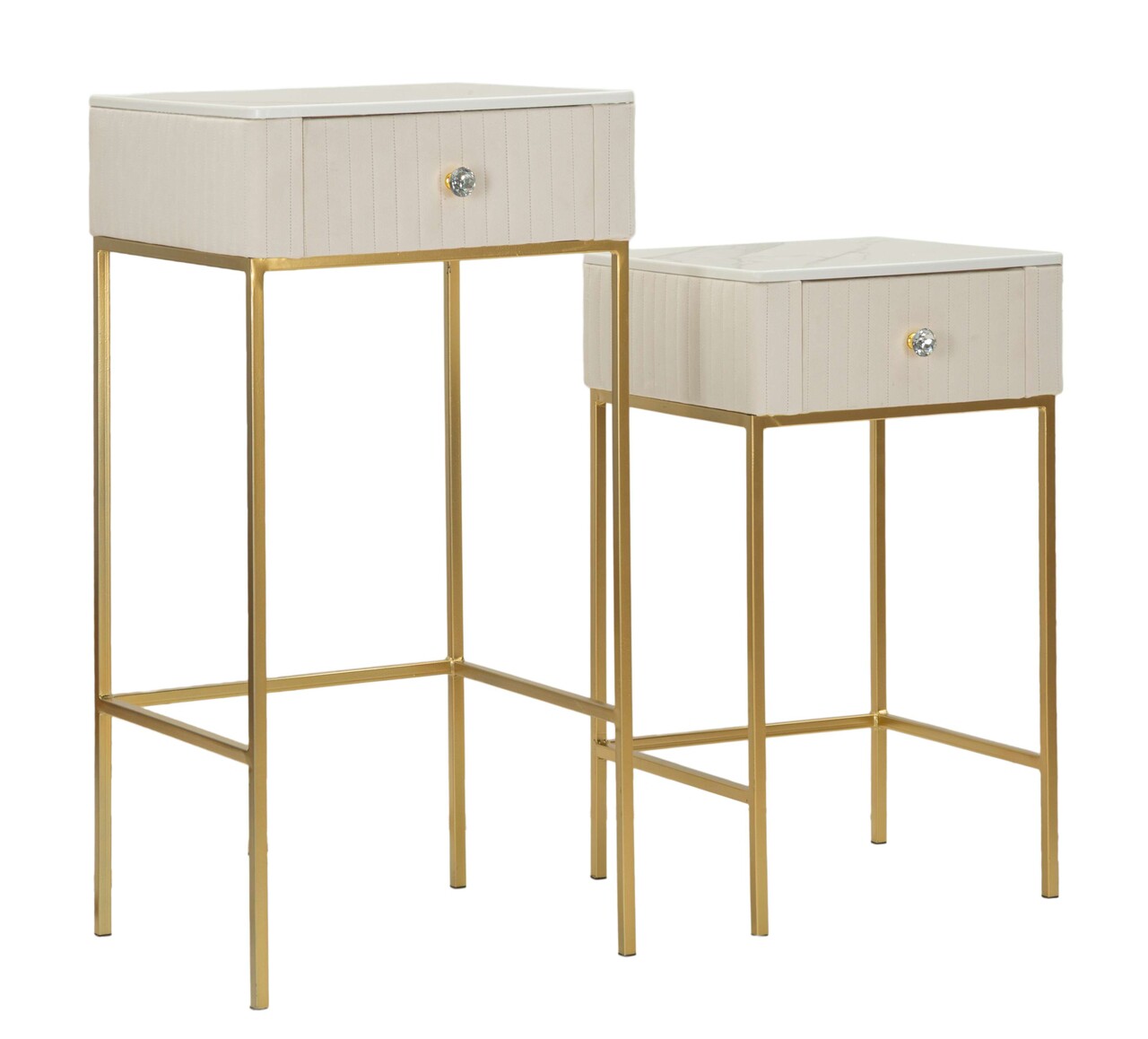Set 2 masute inalte Wedding, Mauro Ferretti, 45x90 cm, lemn de pin/MDF/metal, crem/auriu