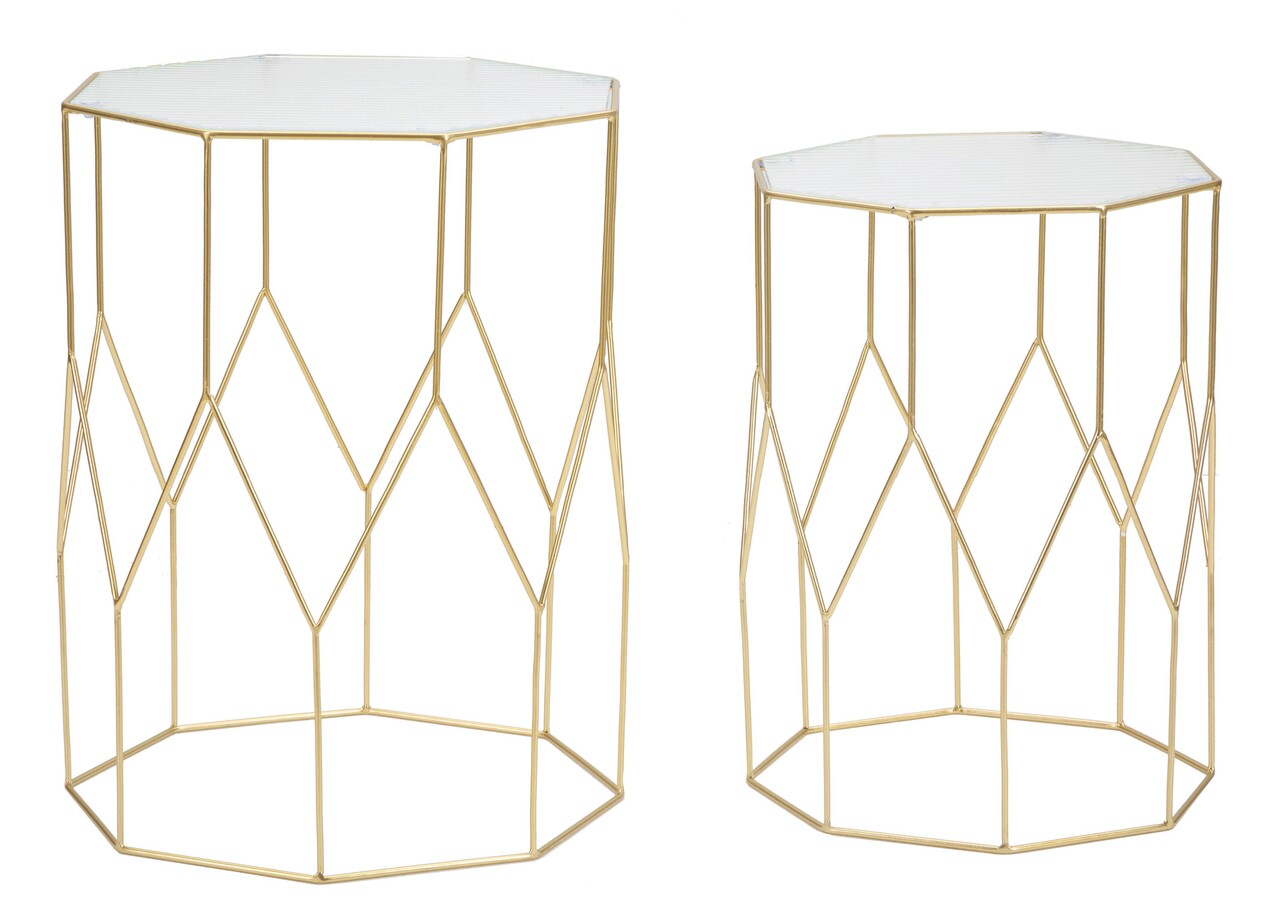 Set 2 masute New Glass, Mauro Ferretti, 37x47 cm, fier/sticla, auriu