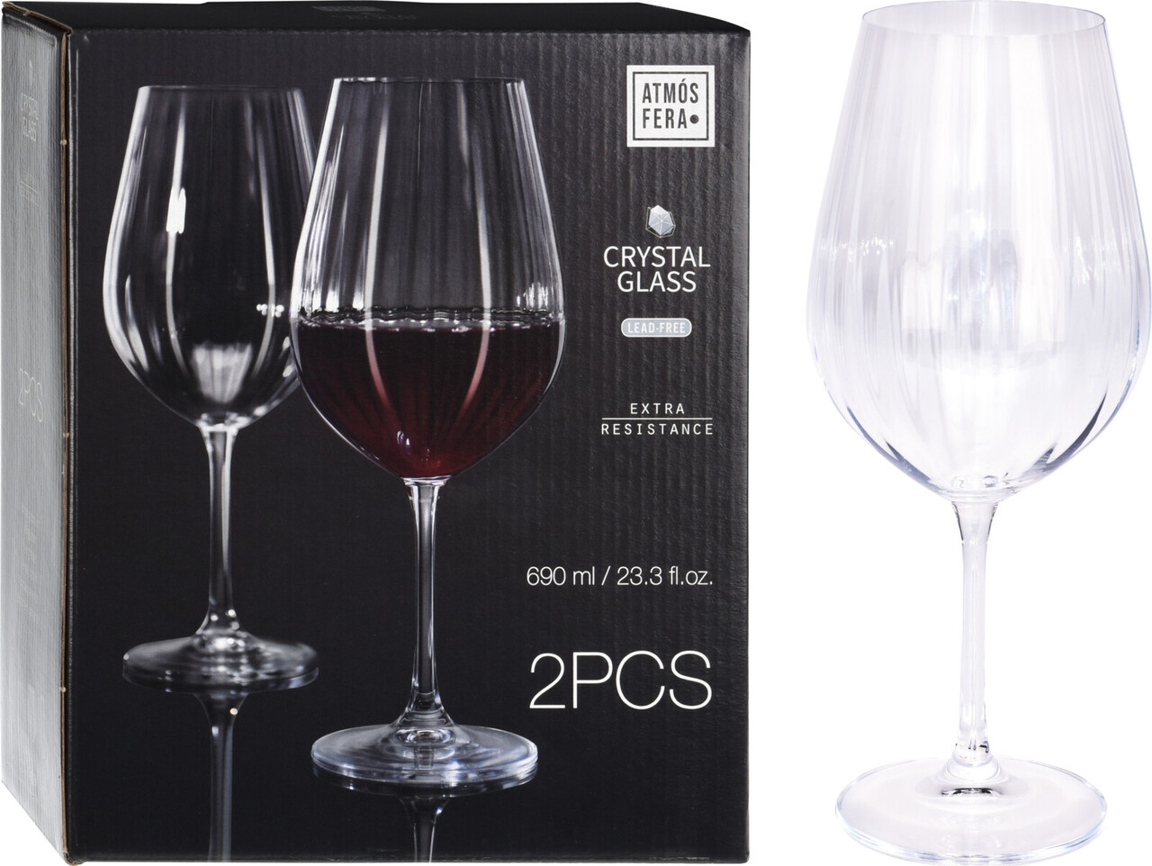 Set 2 pahare pentru vin, Excellent Houseware, 690 ml, 9x24 cm, cristal, transparent
