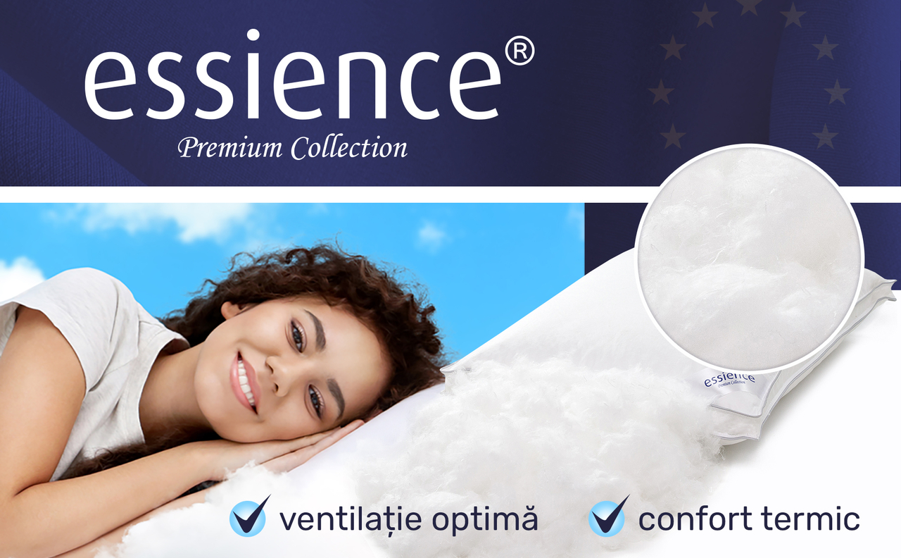 PRODUSA IN ROMANIA: Pernele Essience Premium Collection sunt create și produse în Romania, folosind materiale de calitate superioara pentru a asigura cea mai bună experiență de dormit.