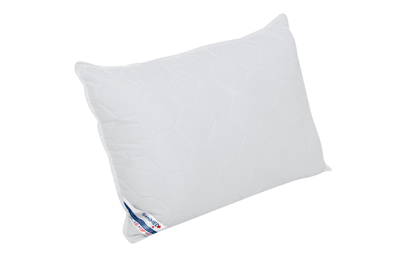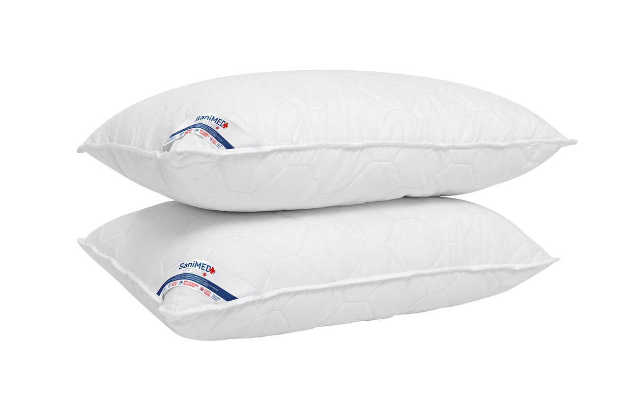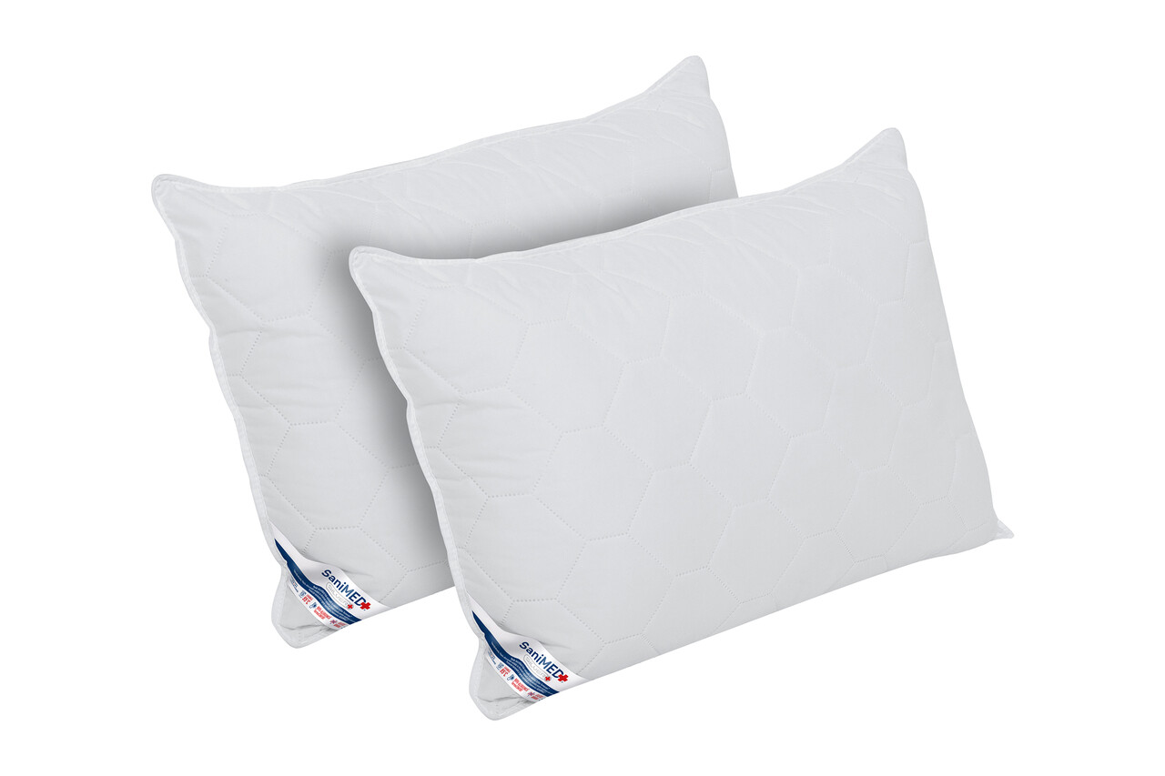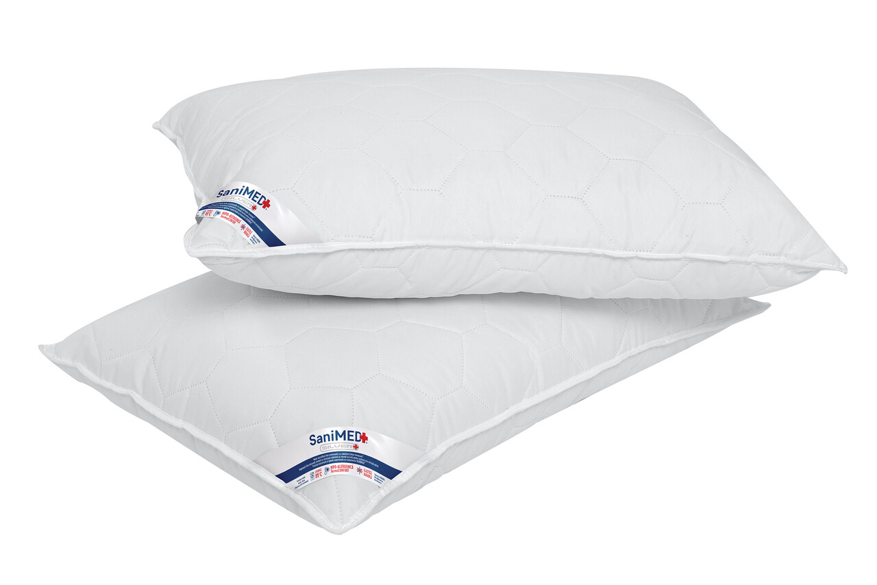 Set 2 perne Alcam, SaniMed® 50x70 cm, microfibra matlasata hipoalergenica, umplutura cu tratament SILVERPLUS®