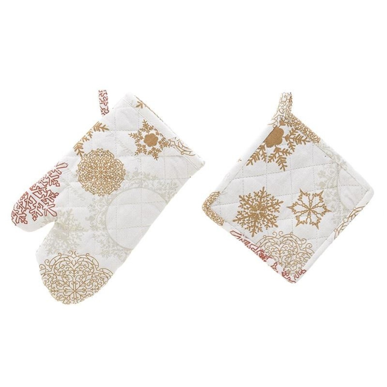 Set 2 piese pentru bucatarie Snowflakes, InArt, bumbac, alb/auriu