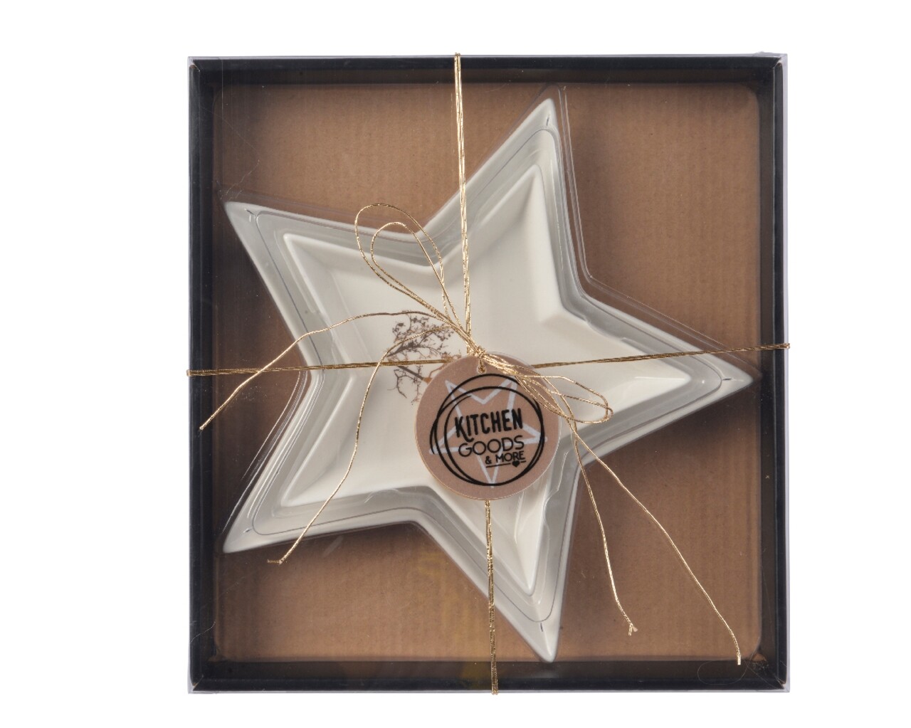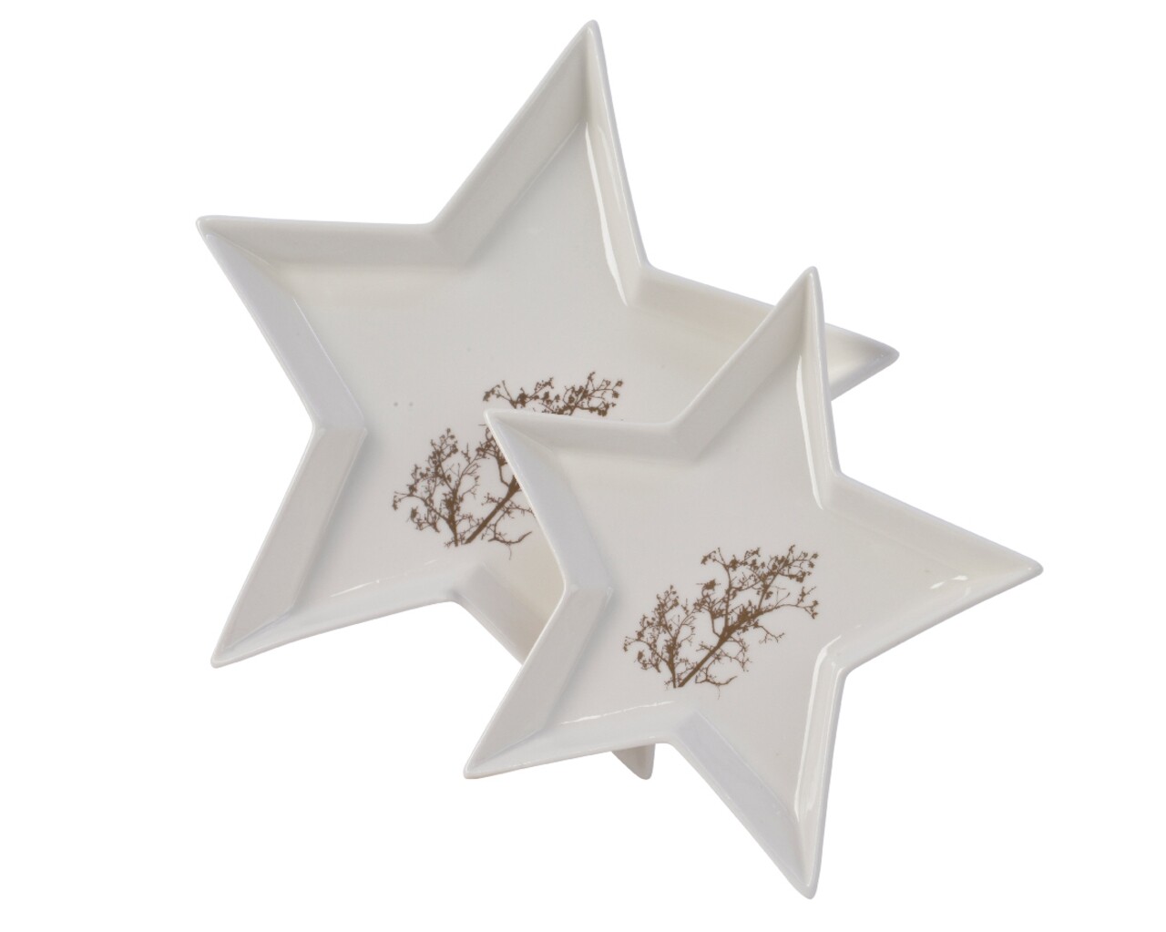 Set 2 platouri Star, Decoris, portelan, alb/auriu