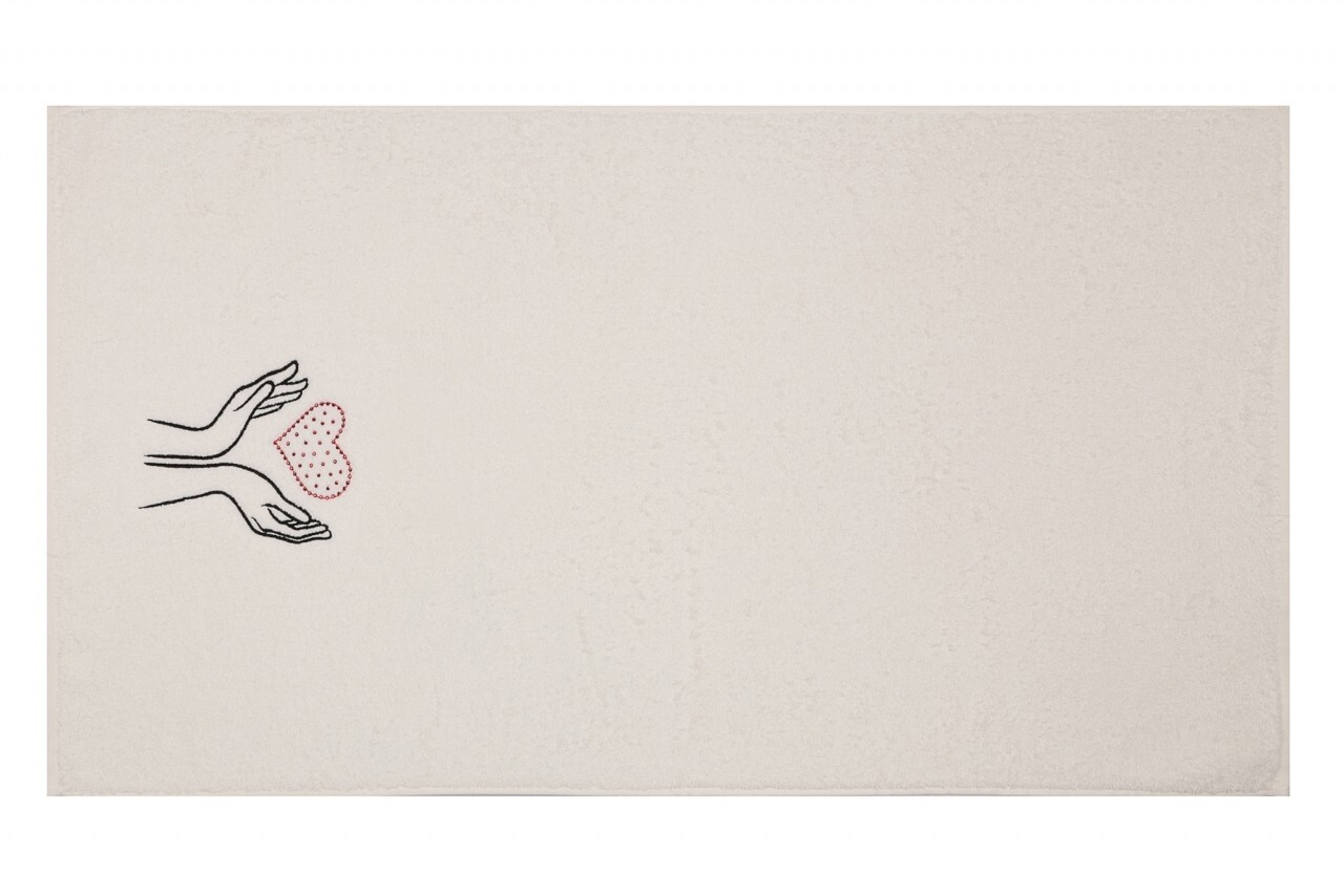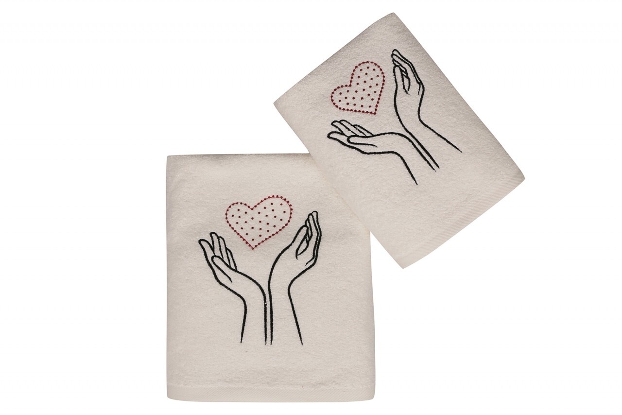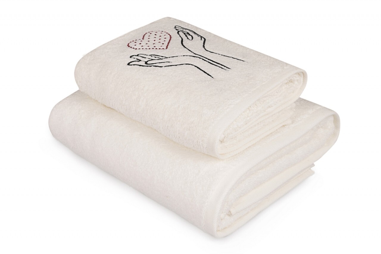 Set 2 prosoape Baskili İkili Takim Tasli Avuc İci Kalp, Saheser, 50 x 90 cm/70 x 140 cm, 100% bumbac, alb