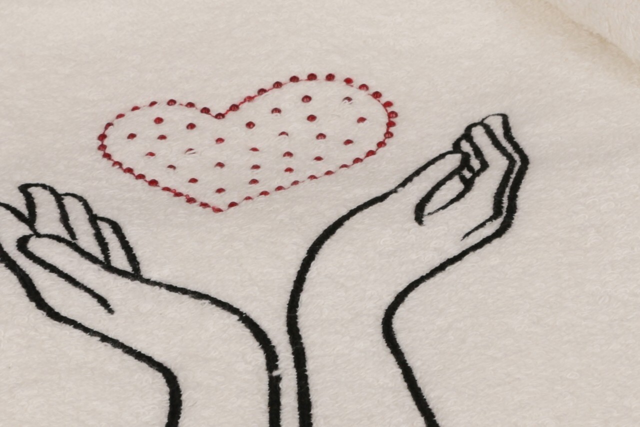 Setul Baskili İkili Takim Tasli Avuc Ici Kalp este compus din doua prosoape, unul cu dimensiunea de 50 x 90 cm si altul de 70 x 140 cm. Acestea sunt foarte pufoase si se remarca prin gradul ridicat de retentie al apei. Cu un design minimalist, prosoapele sunt decorate cu doua maini ce tin o inima. Setul este ambalat intr-o cutie eleganta, putand fi oferit cadou cuiva drag.