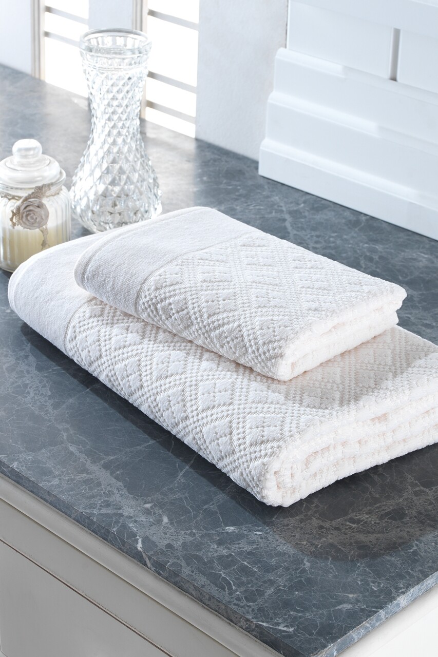 Set 2 prosoape Clerica, Class, 100% bumbac, crem