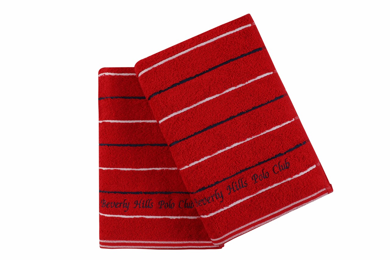 Set 2 prosoape de baie 407, Beverly Hills Polo Club, 70x140 cm, bumbac, rosu