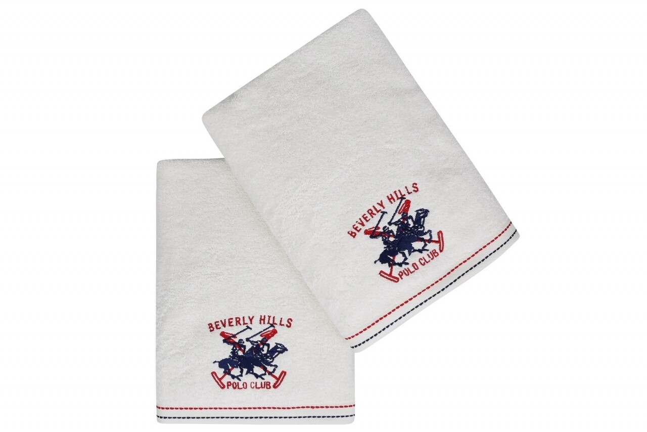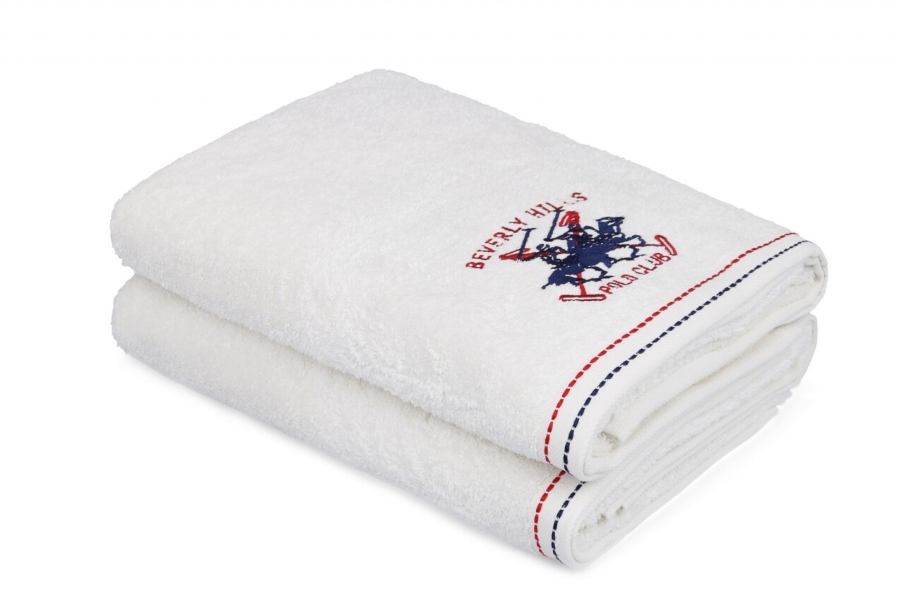 Set 2 prosoape de baie, Beverly Hills Polo Club, 70x140 cm, 100% bumbac, alb