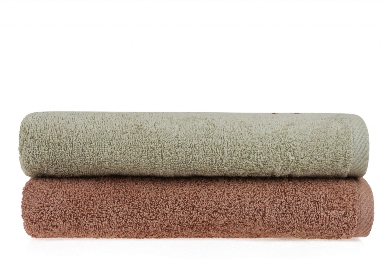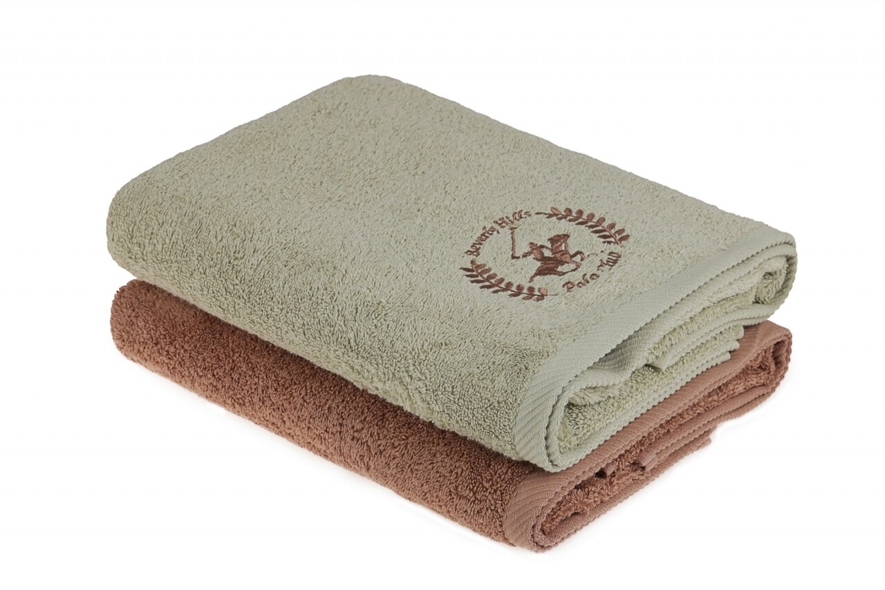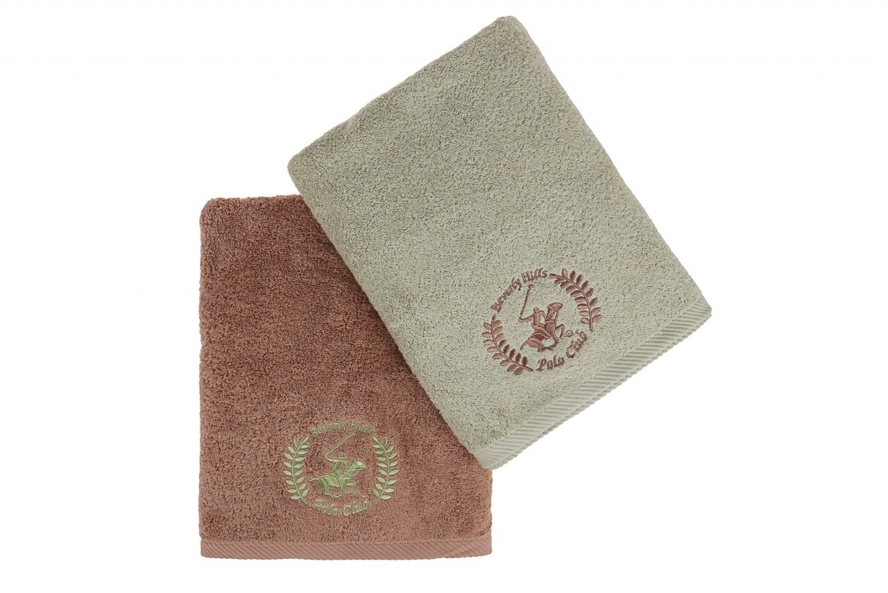 Set 2 prosoape de baie, Beverly Hills Polo Club, 70x140 cm, 100% bumbac, verde deschis/maro inchis