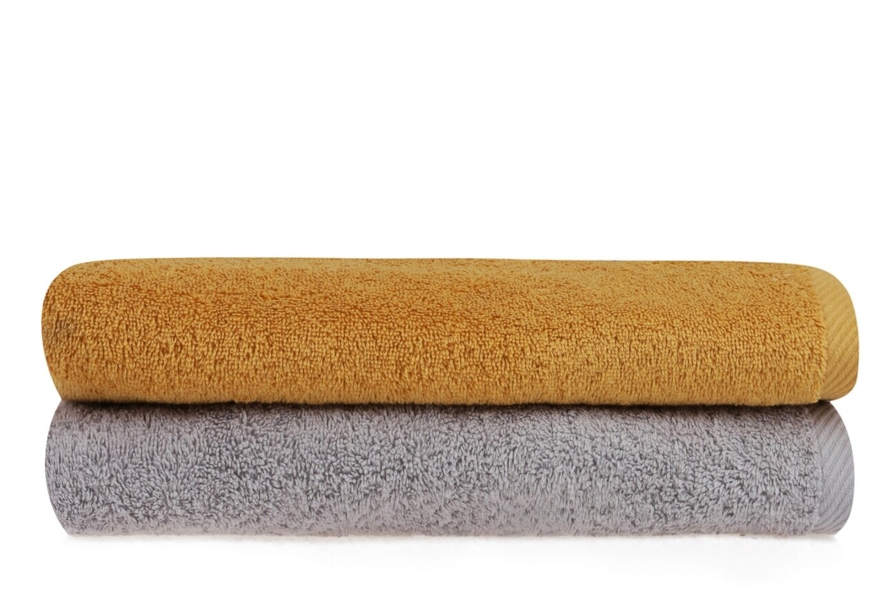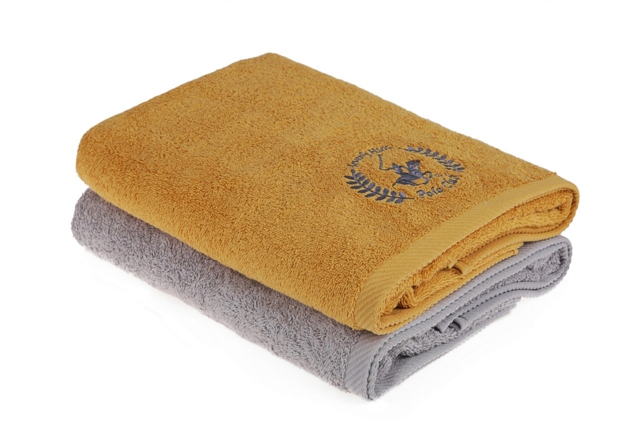 Set 2 prosoape de baie, Beverly Hills Polo Club, 70x140 cm, 100% bumbac, mustar/gri