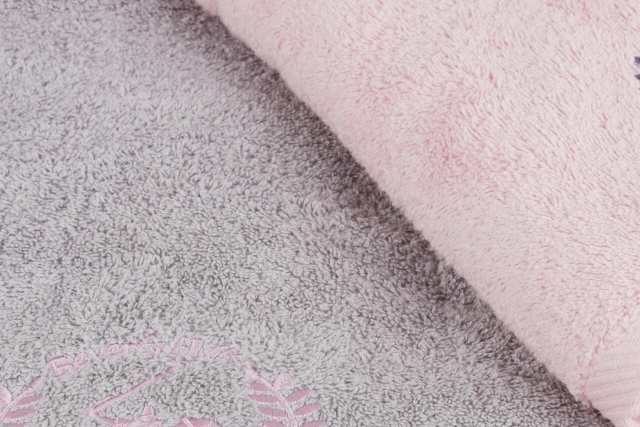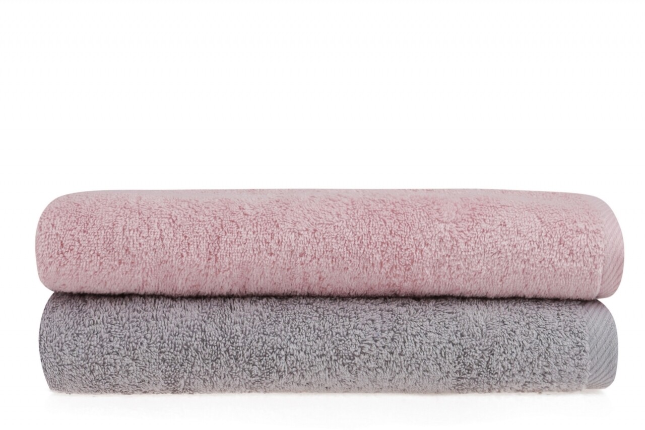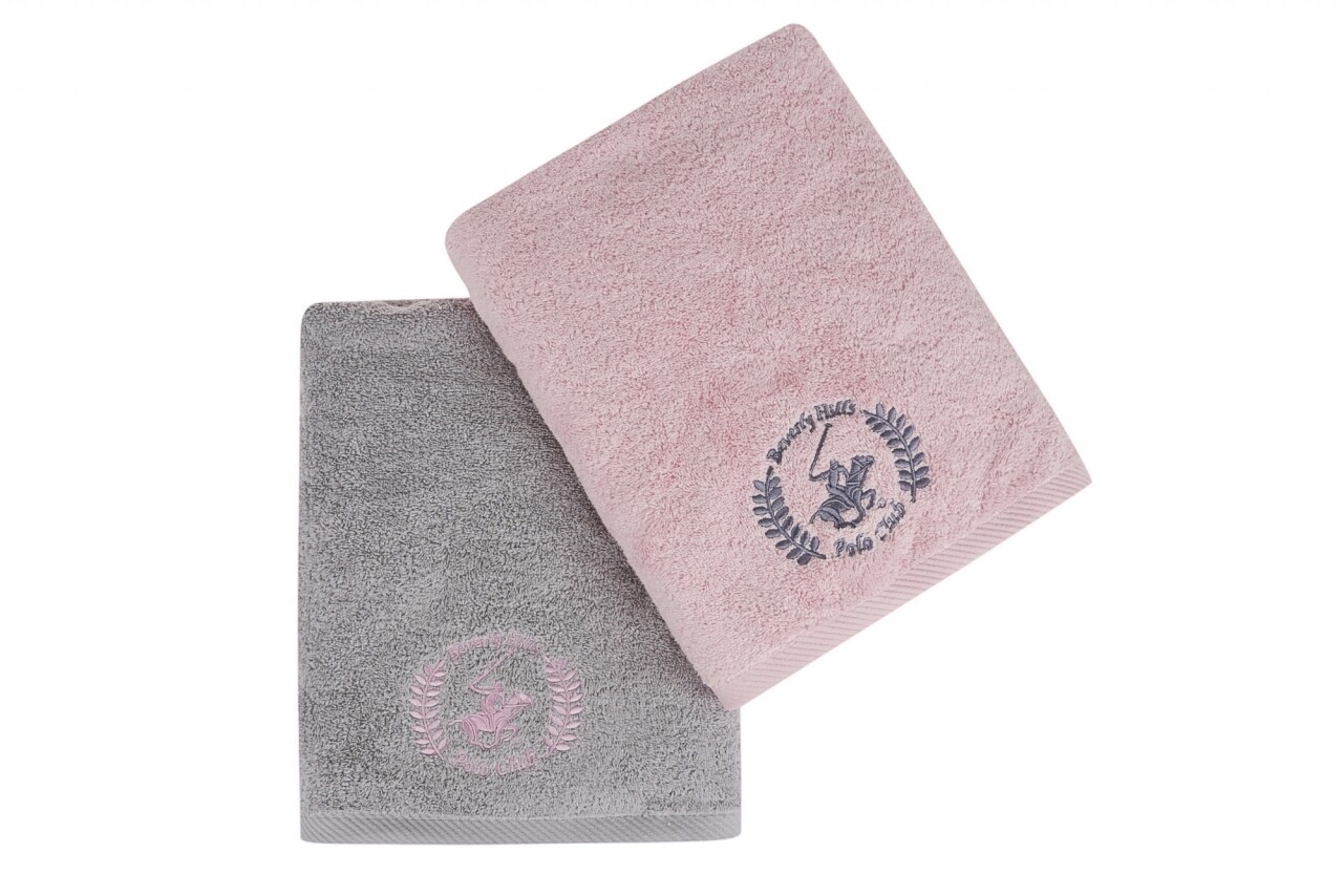 Set 2 prosoape de baie, Beverly Hills Polo Club, 70x140 cm, 100% bumbac, roz/gri