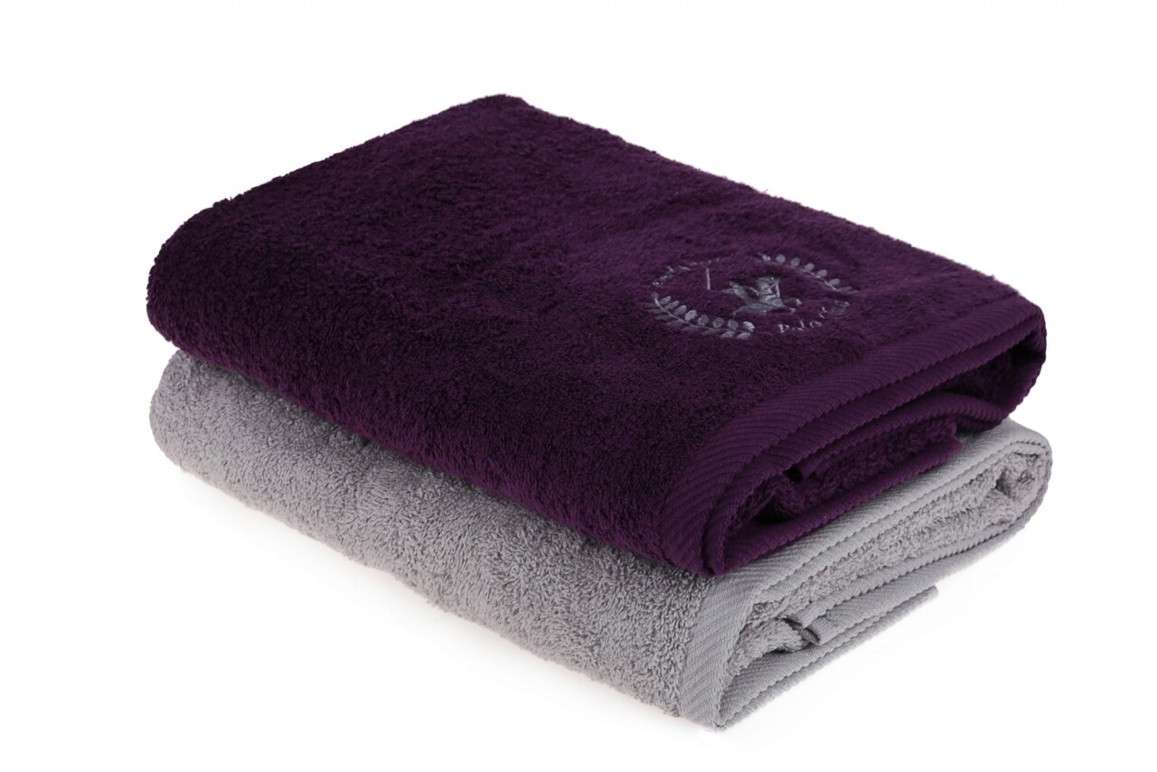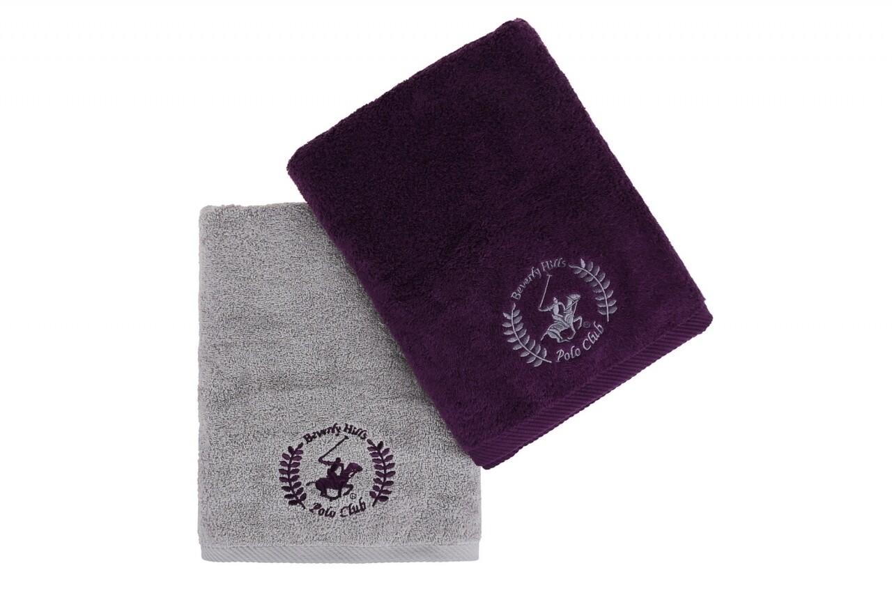 Set 2 prosoape de baie, Beverly Hills Polo Club, 70x140 cm, 100% bumbac, velvet/gri