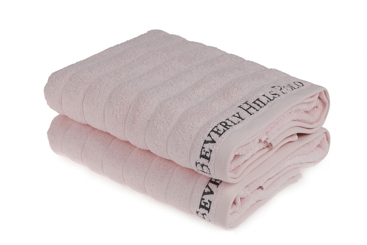 Set 2 prosoape de baie, Beverly Hills Polo Club, 70x140 cm, 100% bumbac, roz deschis