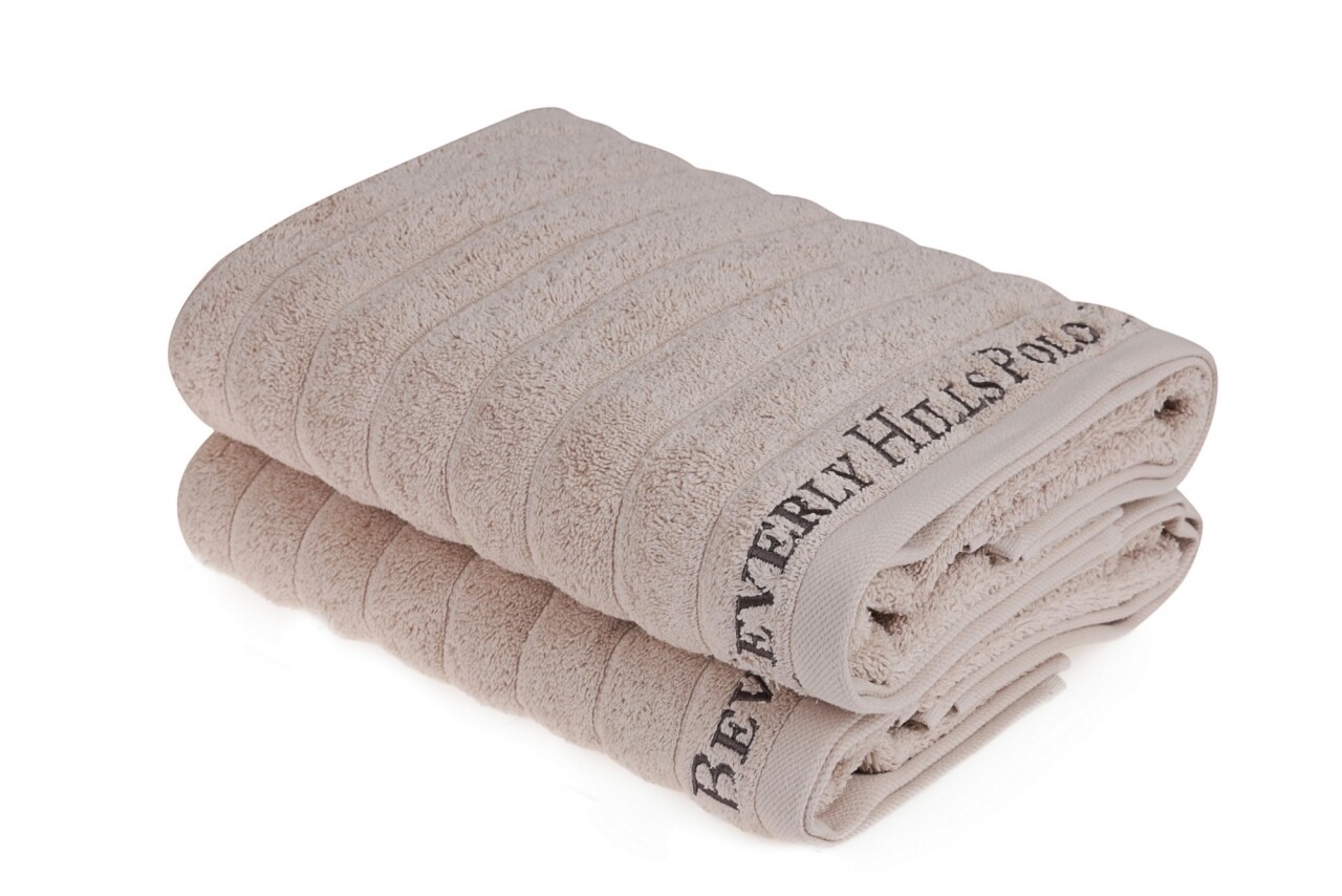 Set 2 prosoape de baie, Beverly Hills Polo Club, 70x140 cm, 100% bumbac, crem