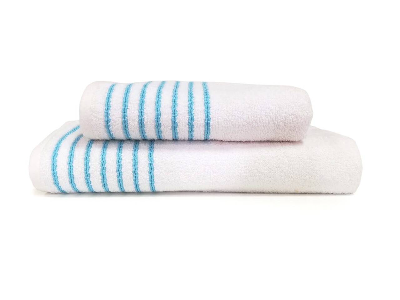 Set 2 prosoape de baie HT, Class, 100% bumbac, alb/turcoaz