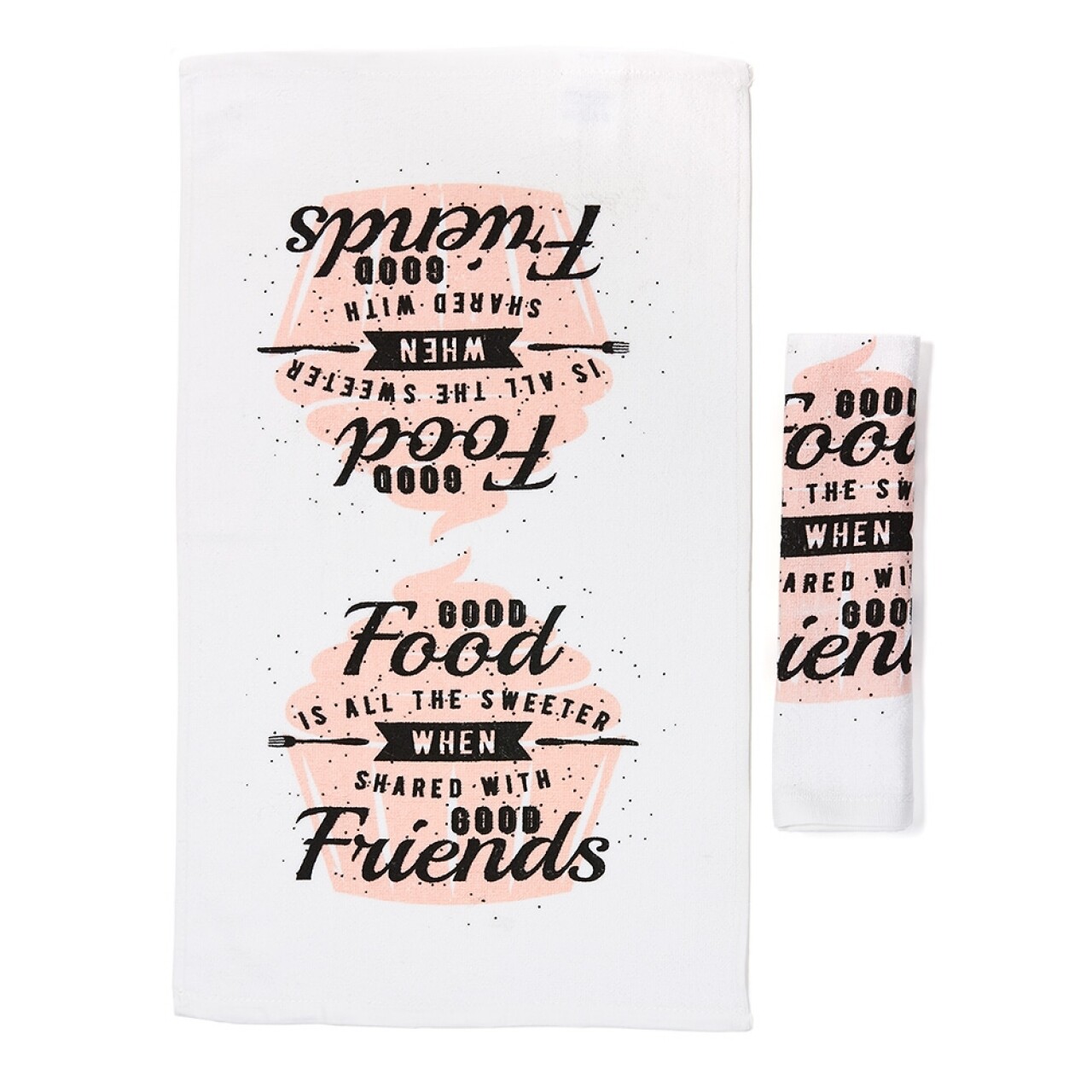 Set 2 prosoape de bucatarie, 100% bumbac, Briosa Roz