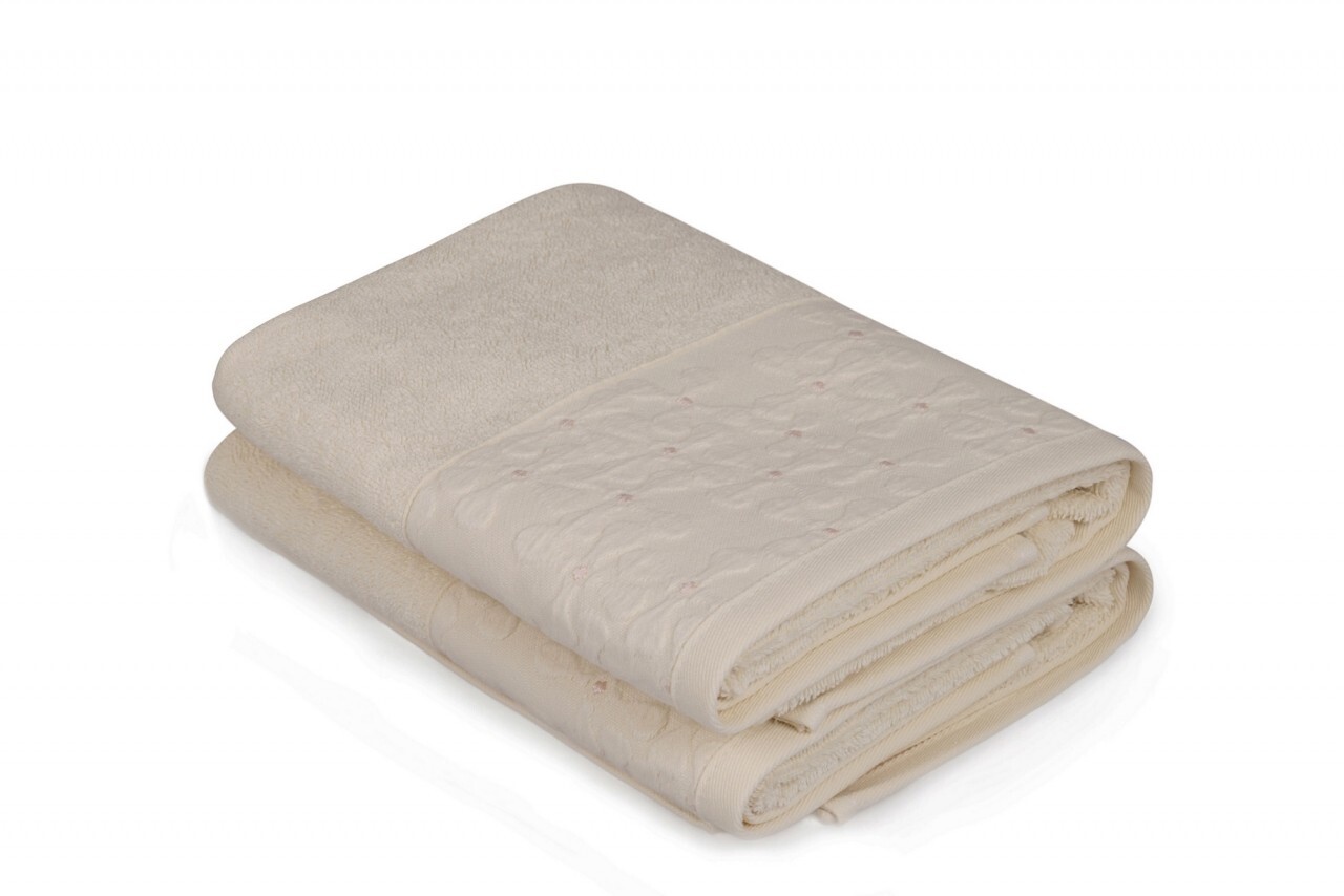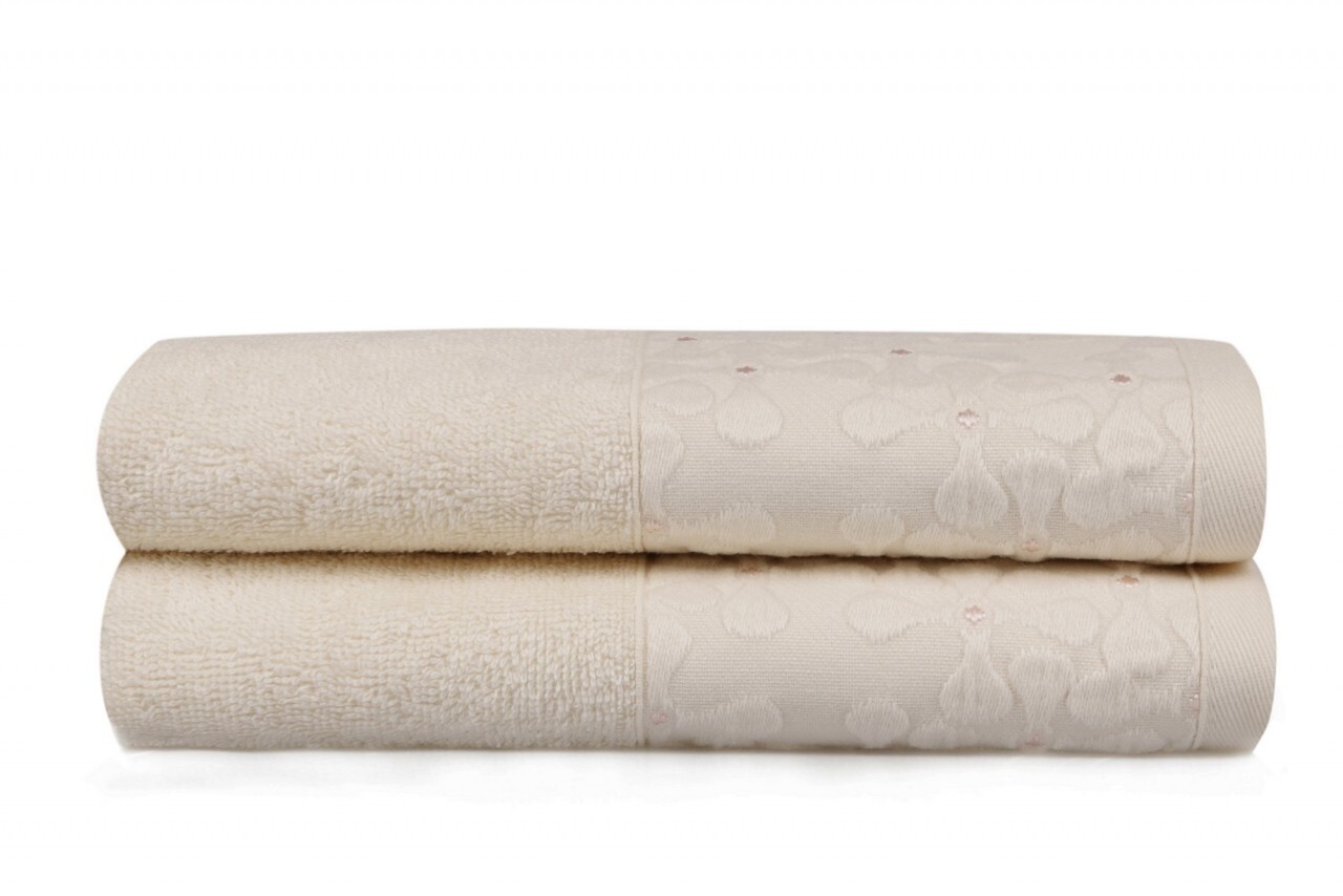 Set 2 prosoape de maini 50x90 cm, 100% bumbac, Soft Kiss, Menekşe, crem
