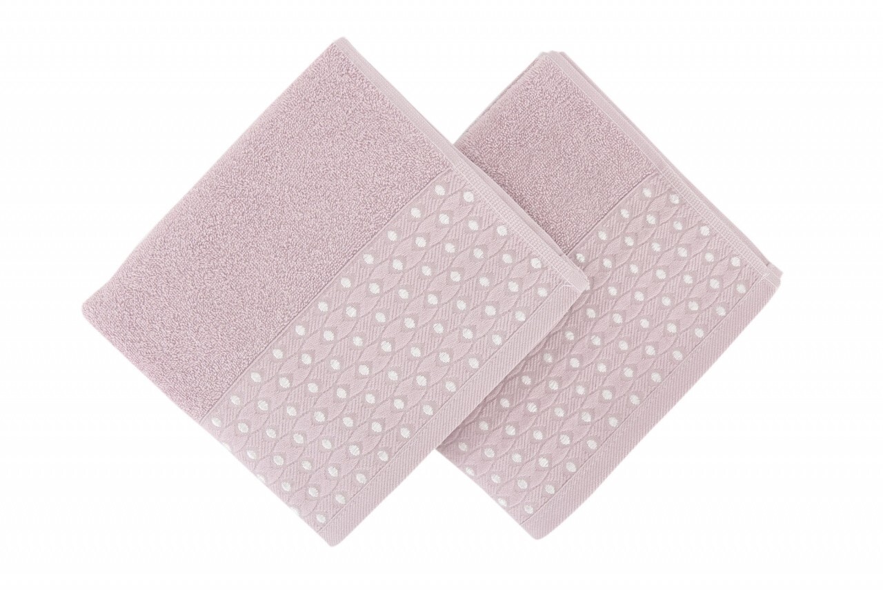 Set 2 prosoape de maini 50x90 cm, 100% bumbac, Soft Kiss, Noktalı Dusty Rose