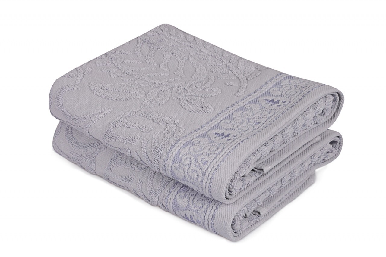 Set 2 prosoape de maini 50x90 cm, 100% bumbac, Soft Kiss, Noktalı Şal, gri