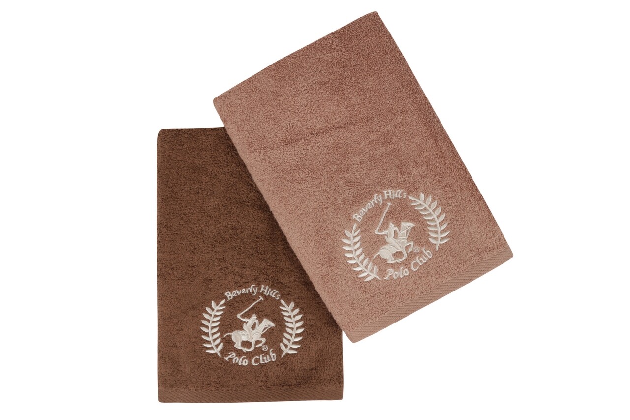 Set 2 prosoape de maini, Beverly Hills Polo Club, 402, 50x90 cm, 100% bumbac, maro/maro inchis