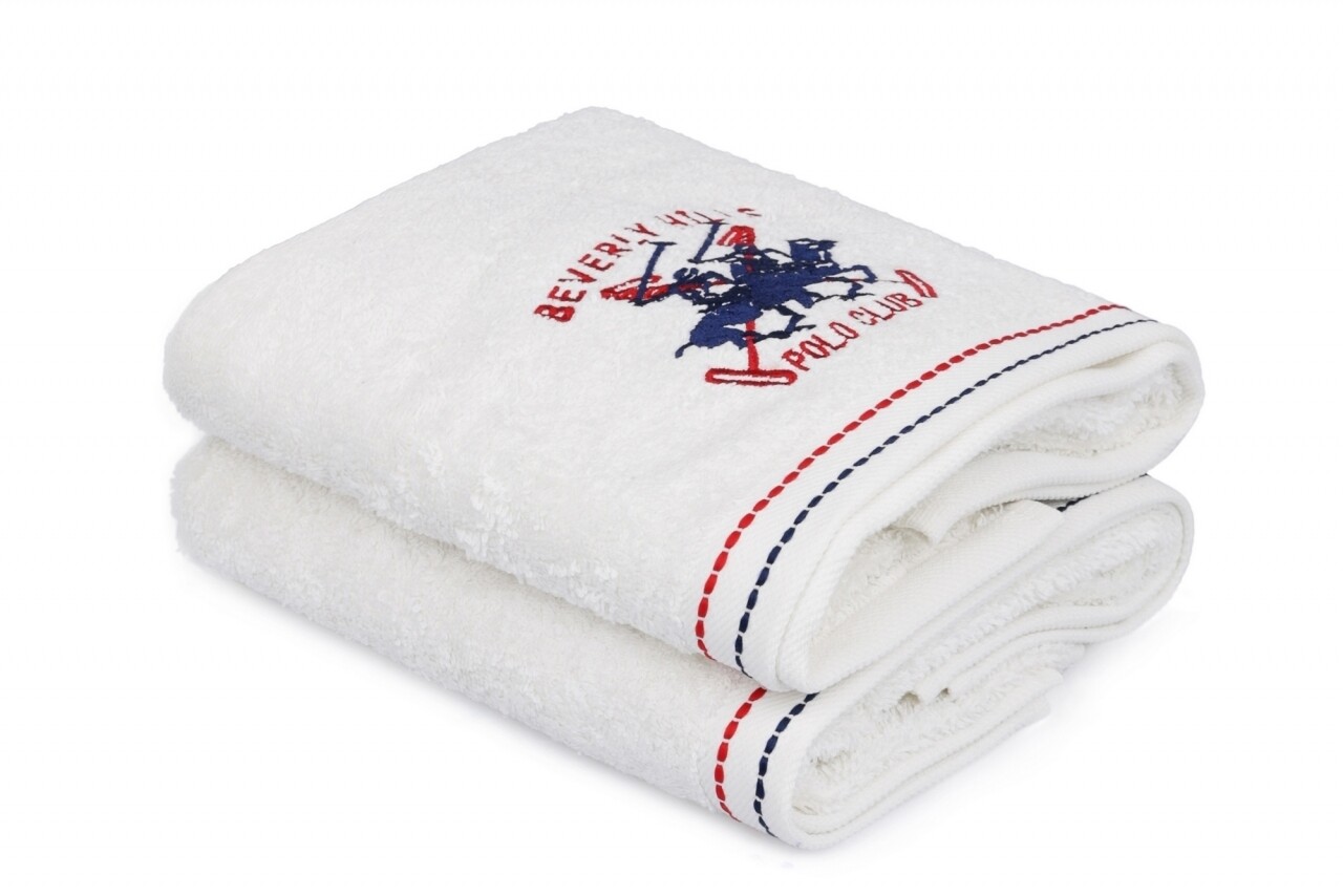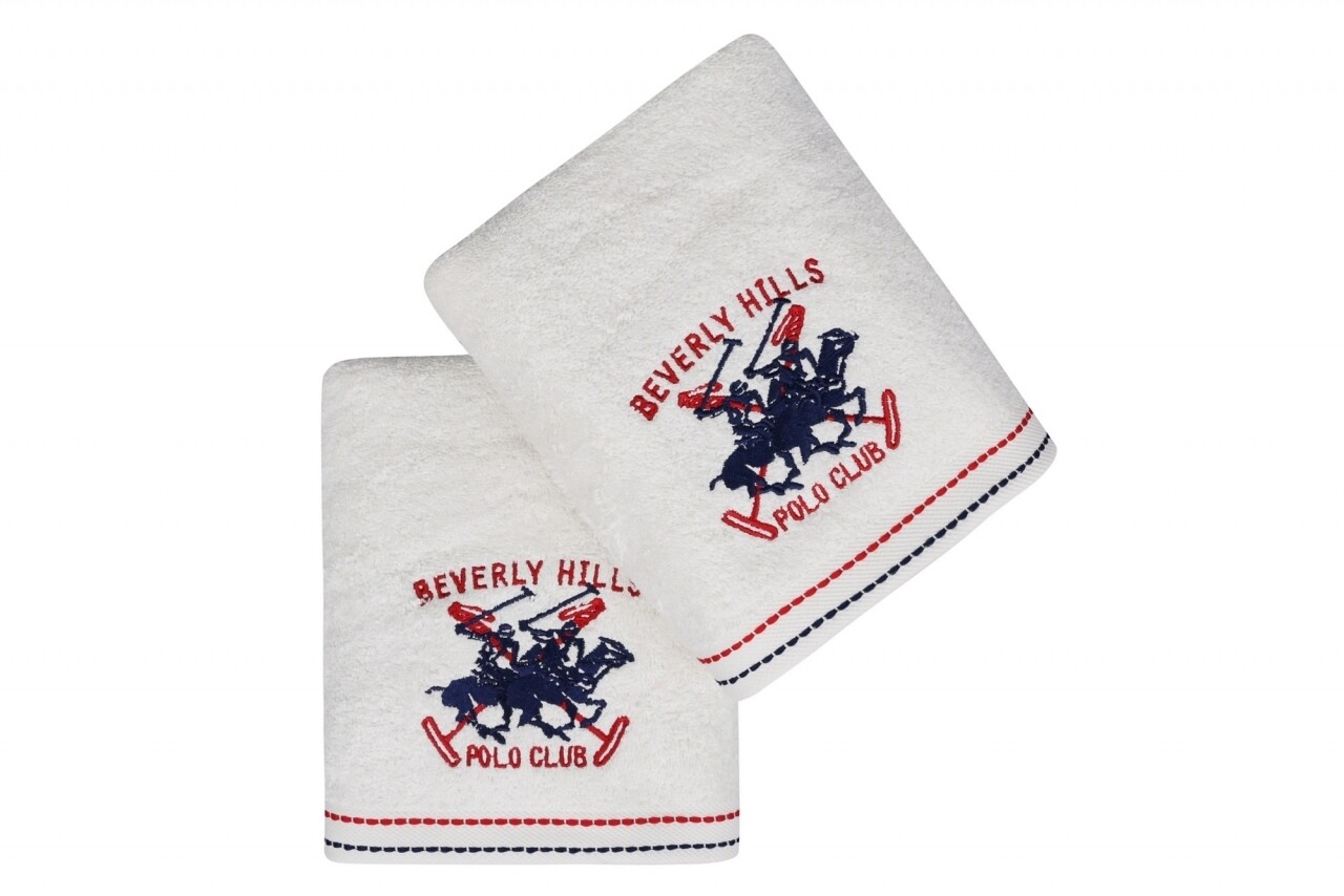 Set 2 prosoape de maini, Beverly Hills Polo Club, 50x90 cm, 100% bumbac, alb 201