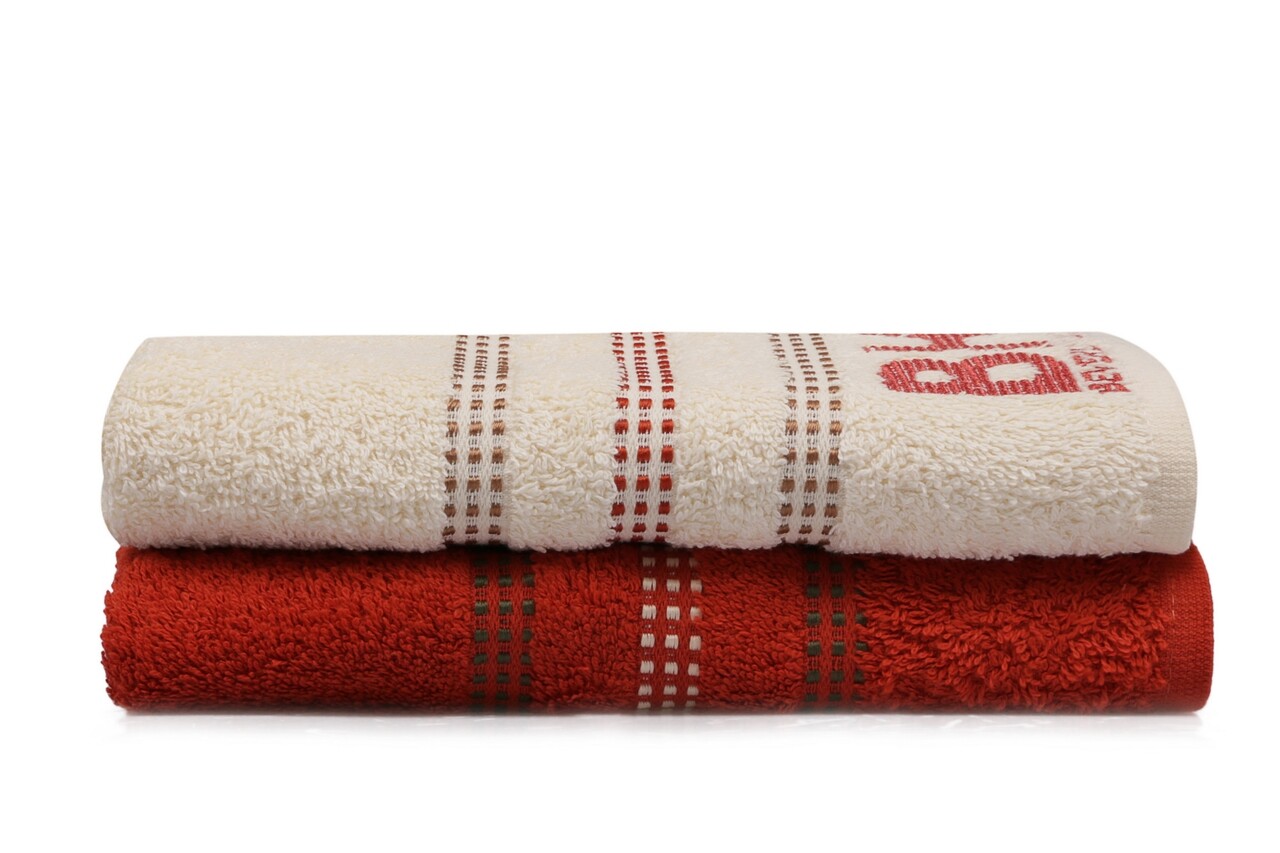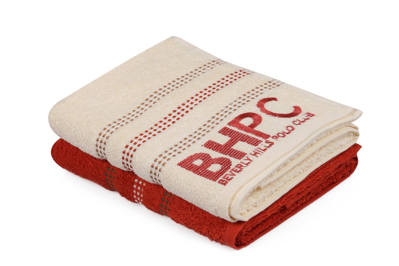 Set 2 prosoape de maini, Beverly Hills Polo Club, Botanik, 50x90 cm, 100% bumbac, caramiziu/crem