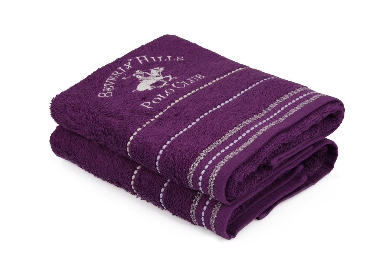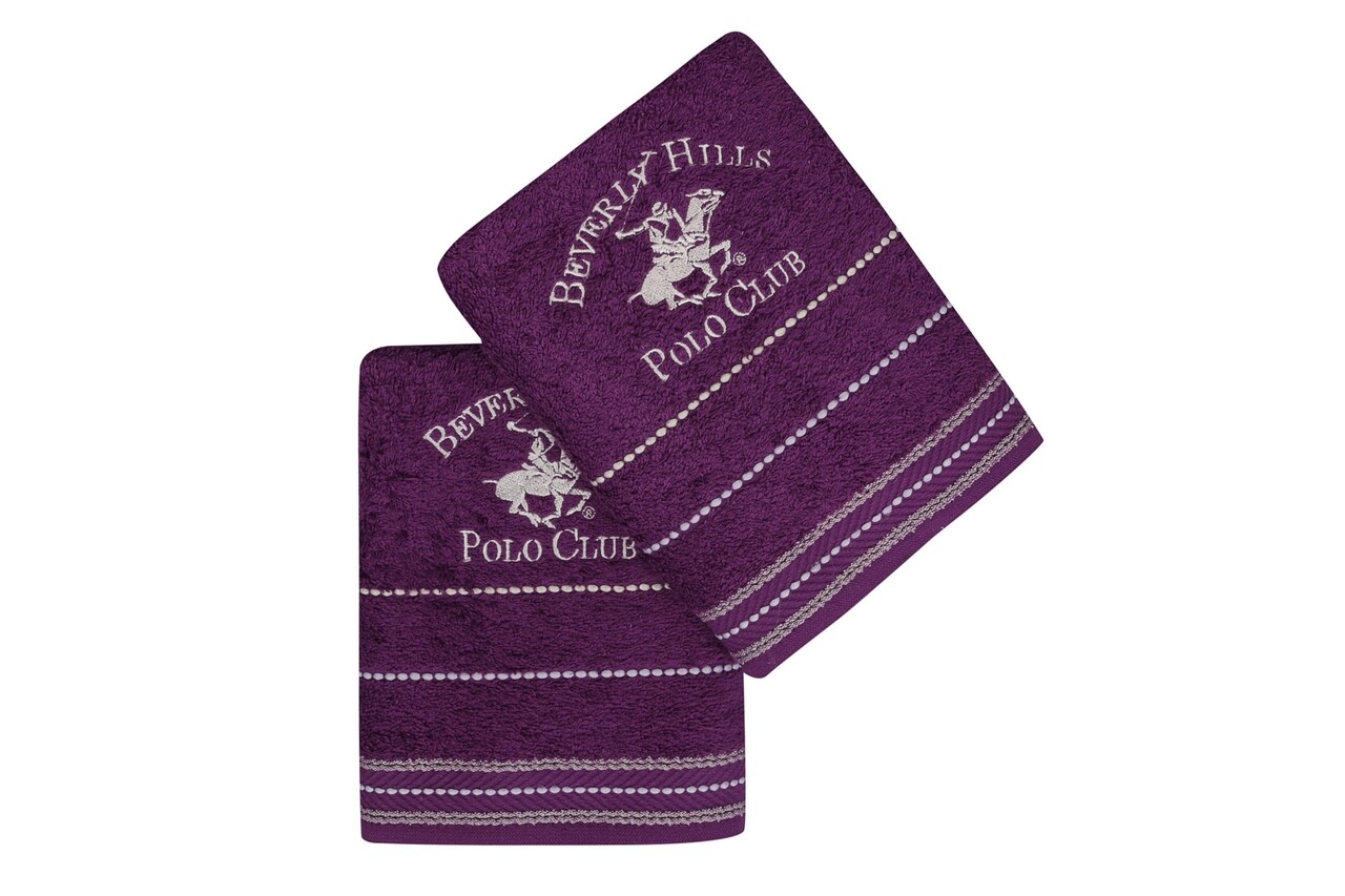 Set 2 prosoape de maini, Beverly Hills Polo Club, Fitili, 50x90 cm, 100% bumbac, mov