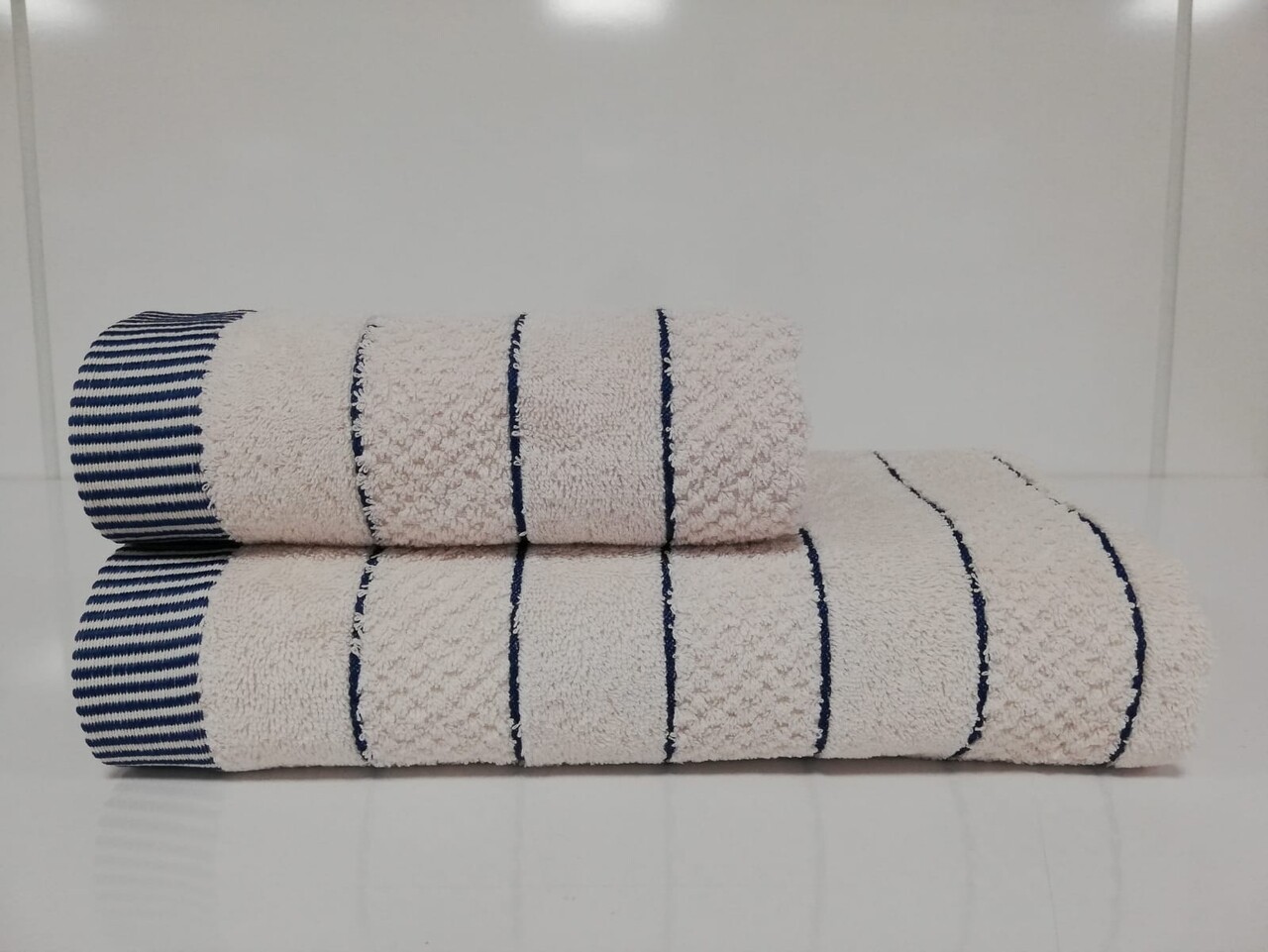 Set 2 prosoape HT.JDY.009, Class, 100% bumbac, crem/albastru