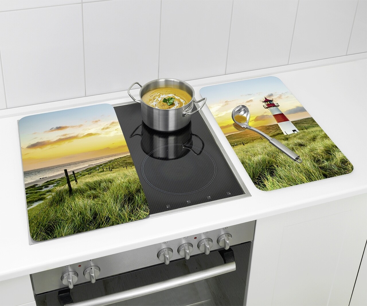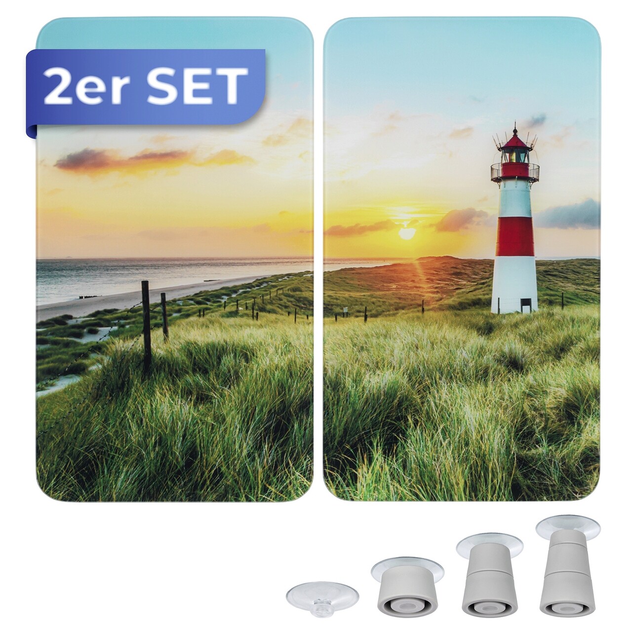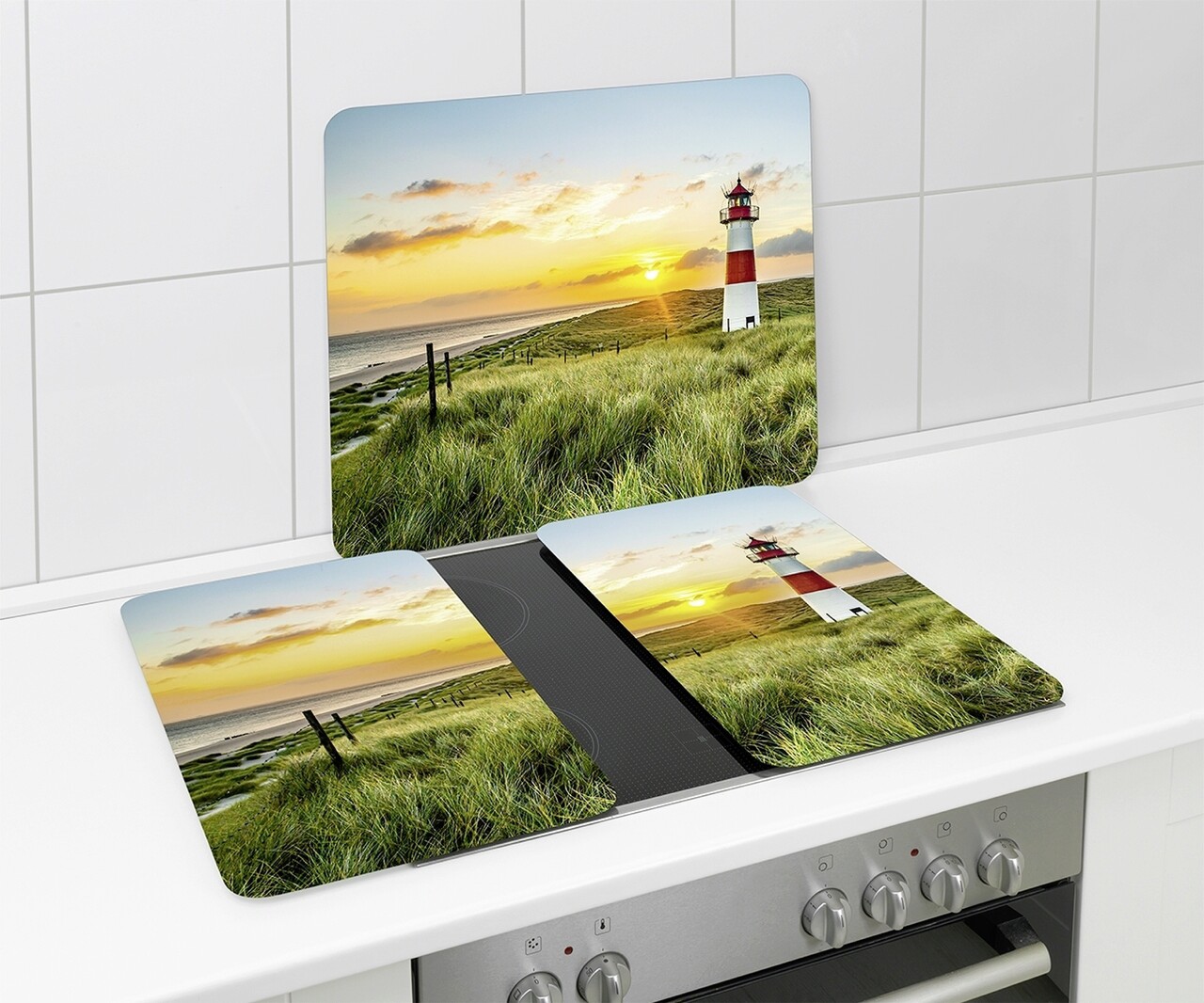 Set 2 protectii pentru aragaz Maximex, Lighthouse, 52x30 cm, sticla, multicolor
