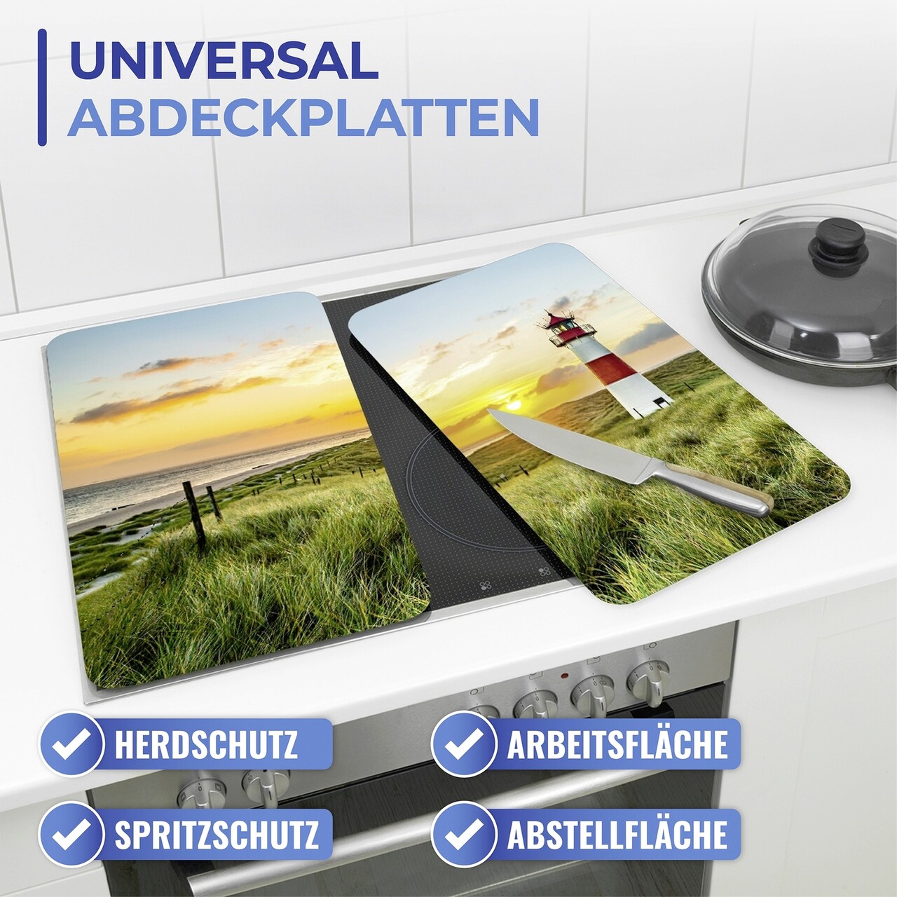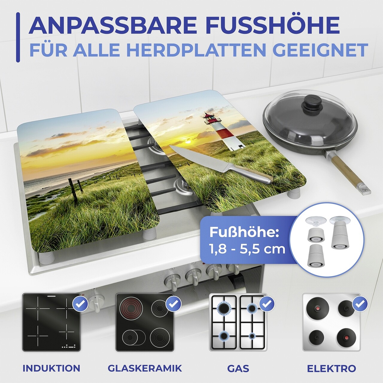 Setul de 2 protectii este perfect pentru plitele electice sau cele pe gaz. Cele 8 picioare speciale anti-alunecare incluse asigura intotdeauna spatiul necesar. Datorita proprietatilor lor rezistente la caldura sunt potrivite pentru asezarea cratitelor si tigailor fierbinti. Pot fi folosite si ca extensie a blatului de lucru pentru prepararea alimentelor. Suprafata rezistenta la zgarieturi. Inaltimea picioarelor poate fi reglata si se incadreaza intre 1.8 cm si 5.5 cm.