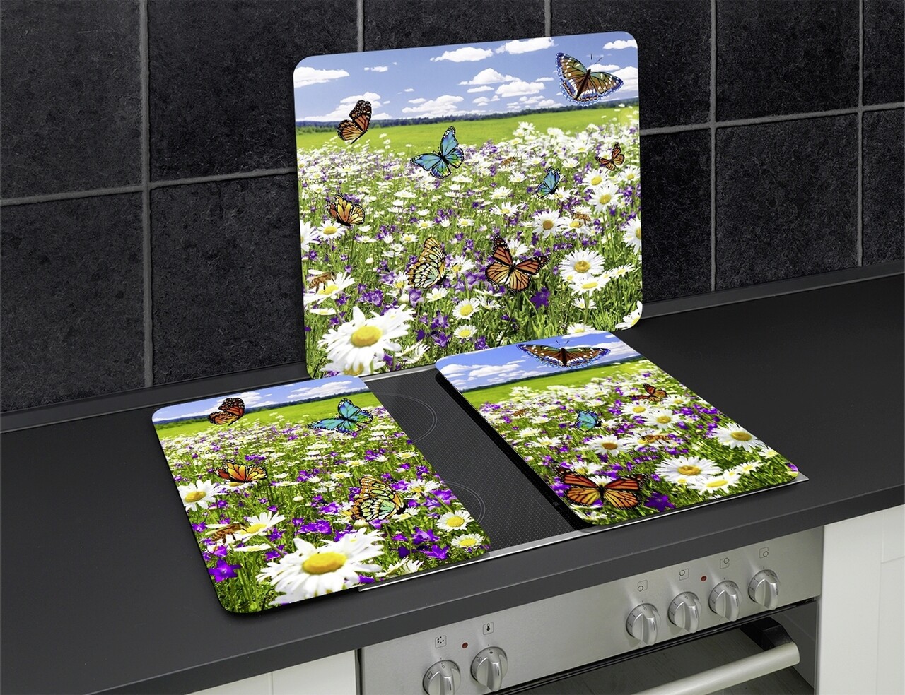Set 2 protectii pentru aragaz Maximex, Summer, 52x30 cm, sticla, multicolor