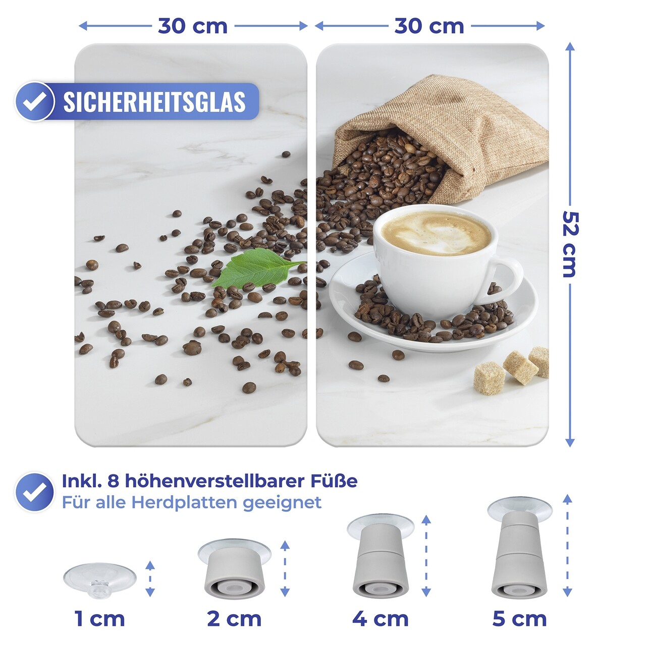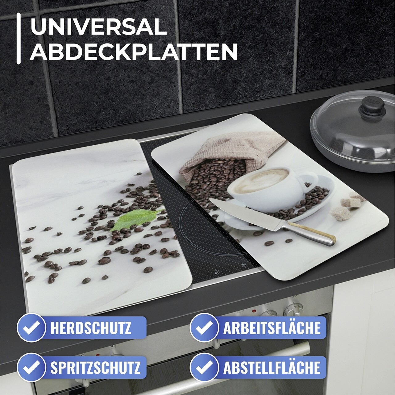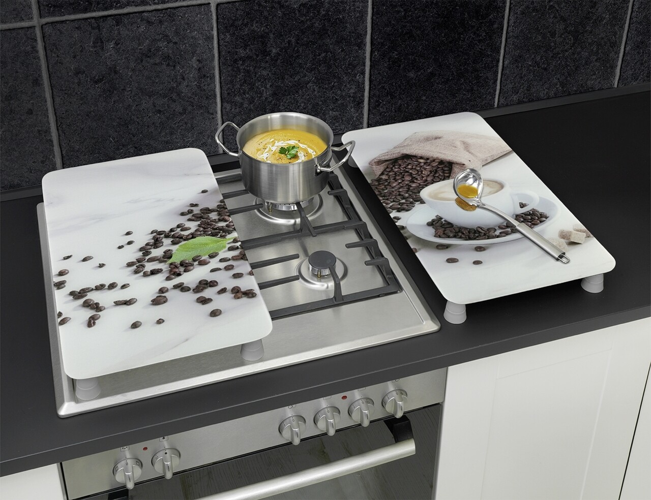 Set 2 protectii universale pentru aragaz Cafe Aromatica, Wenko, 30x52x1.8-5 cm, sticla temperata, multicolor