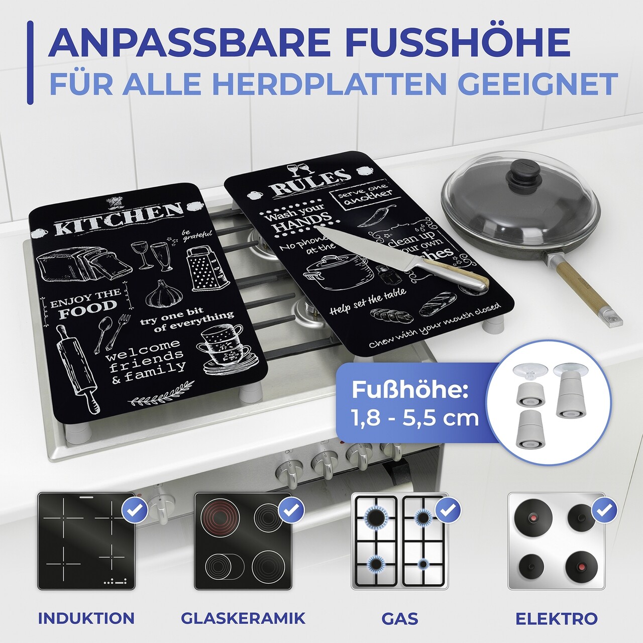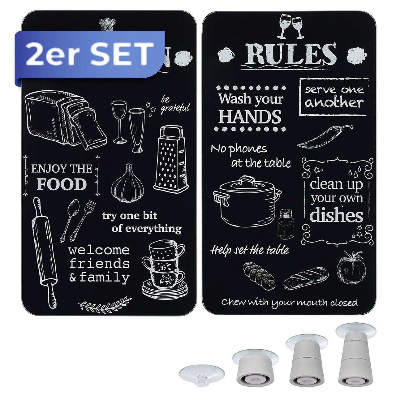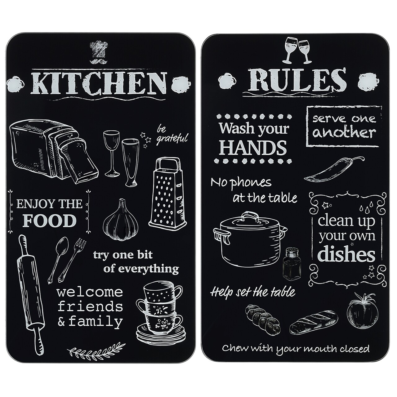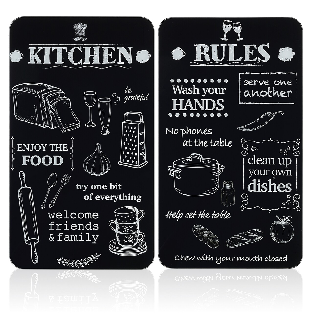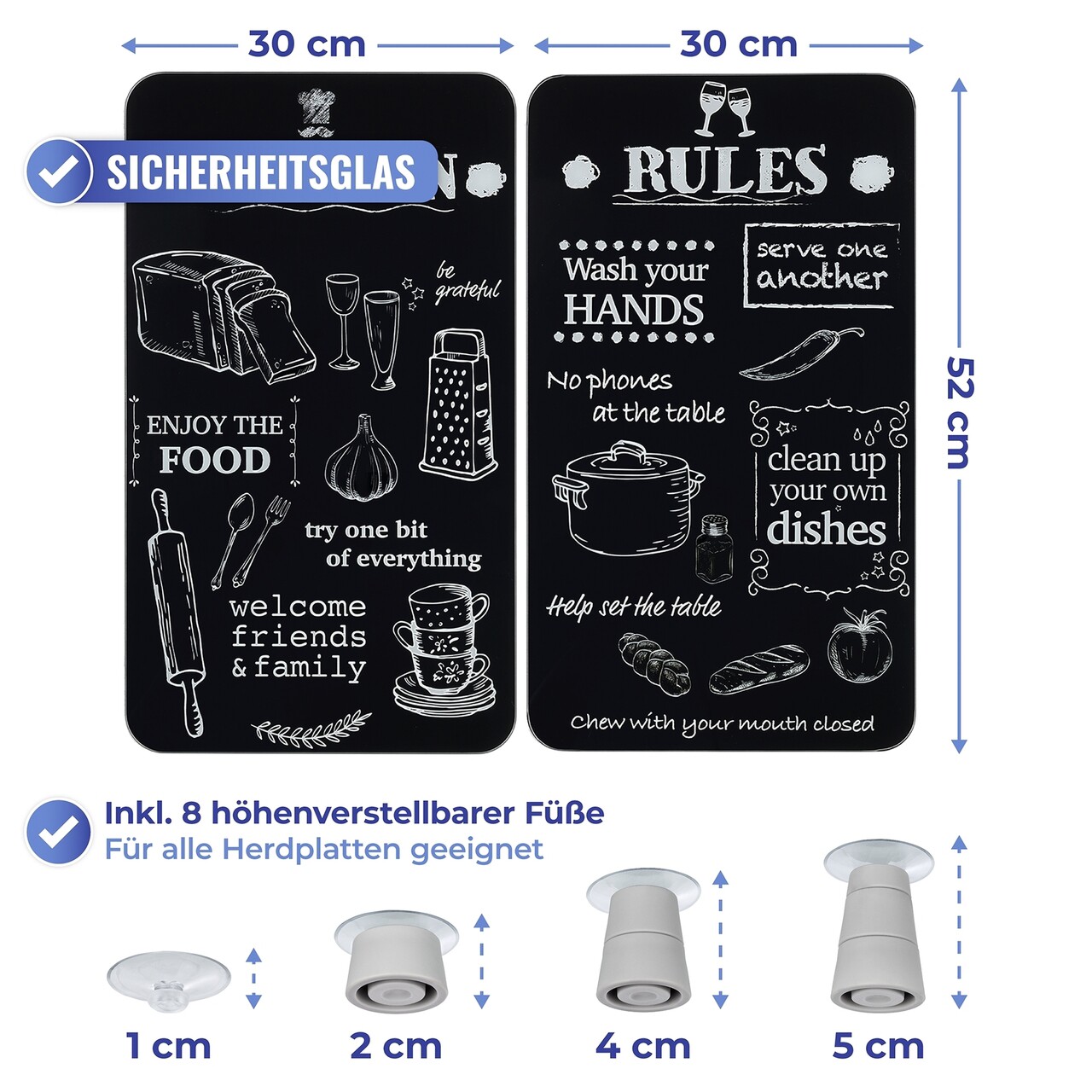 Set 2 protectii universale pentru aragaz Kitchen Rules, Wenko, 30x52x1.8-5 cm, sticla temperata, negru/alb