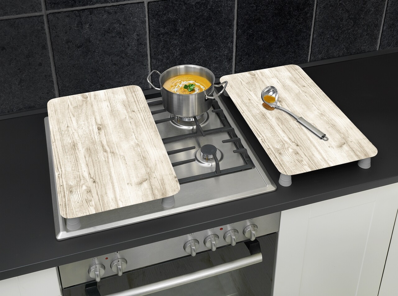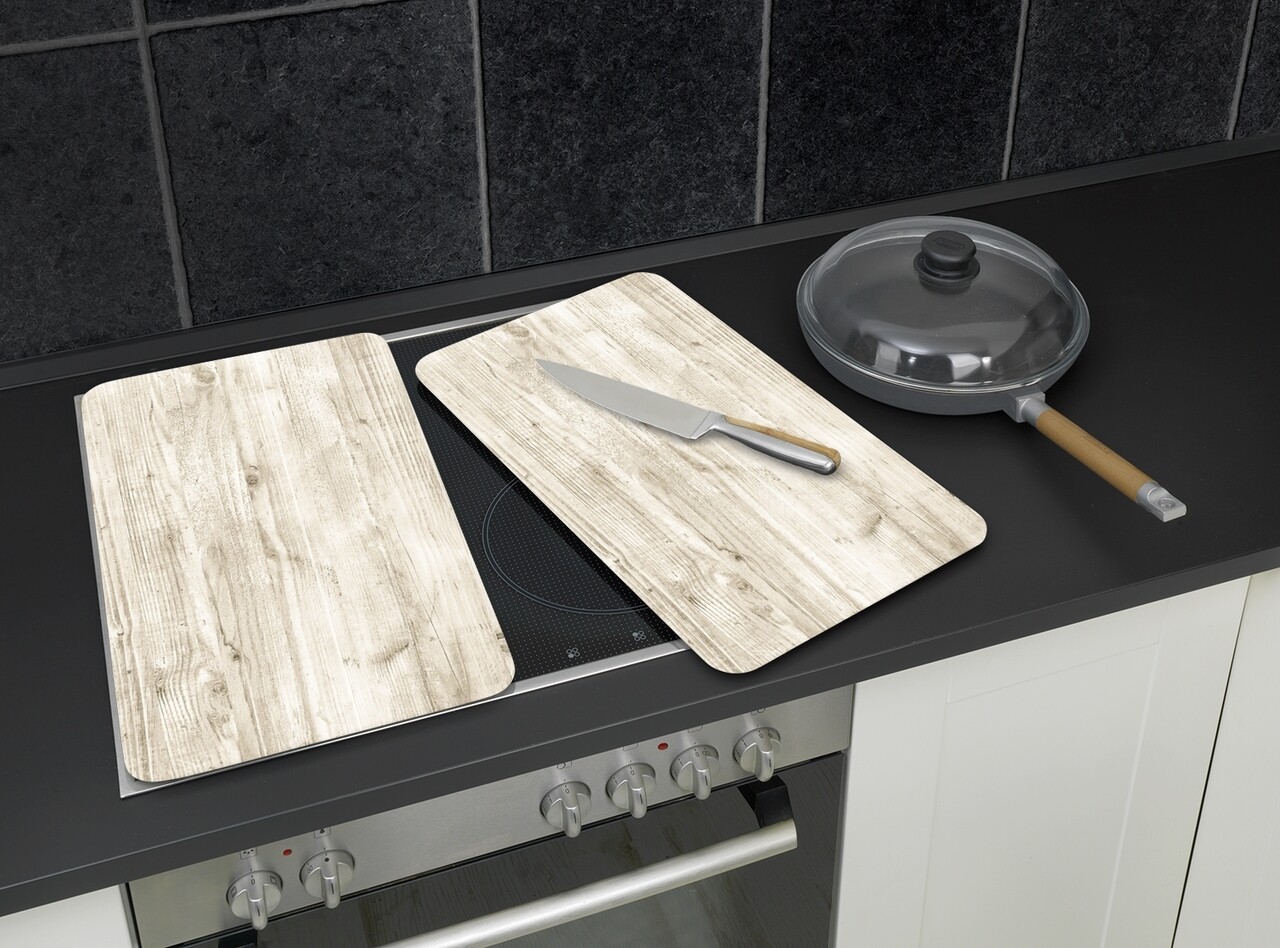 Set 2 protectii universale pentru aragaz Universal Natural, Wenko, 30x52x1.8-5.5 cm, sticla/plastic, multicolor