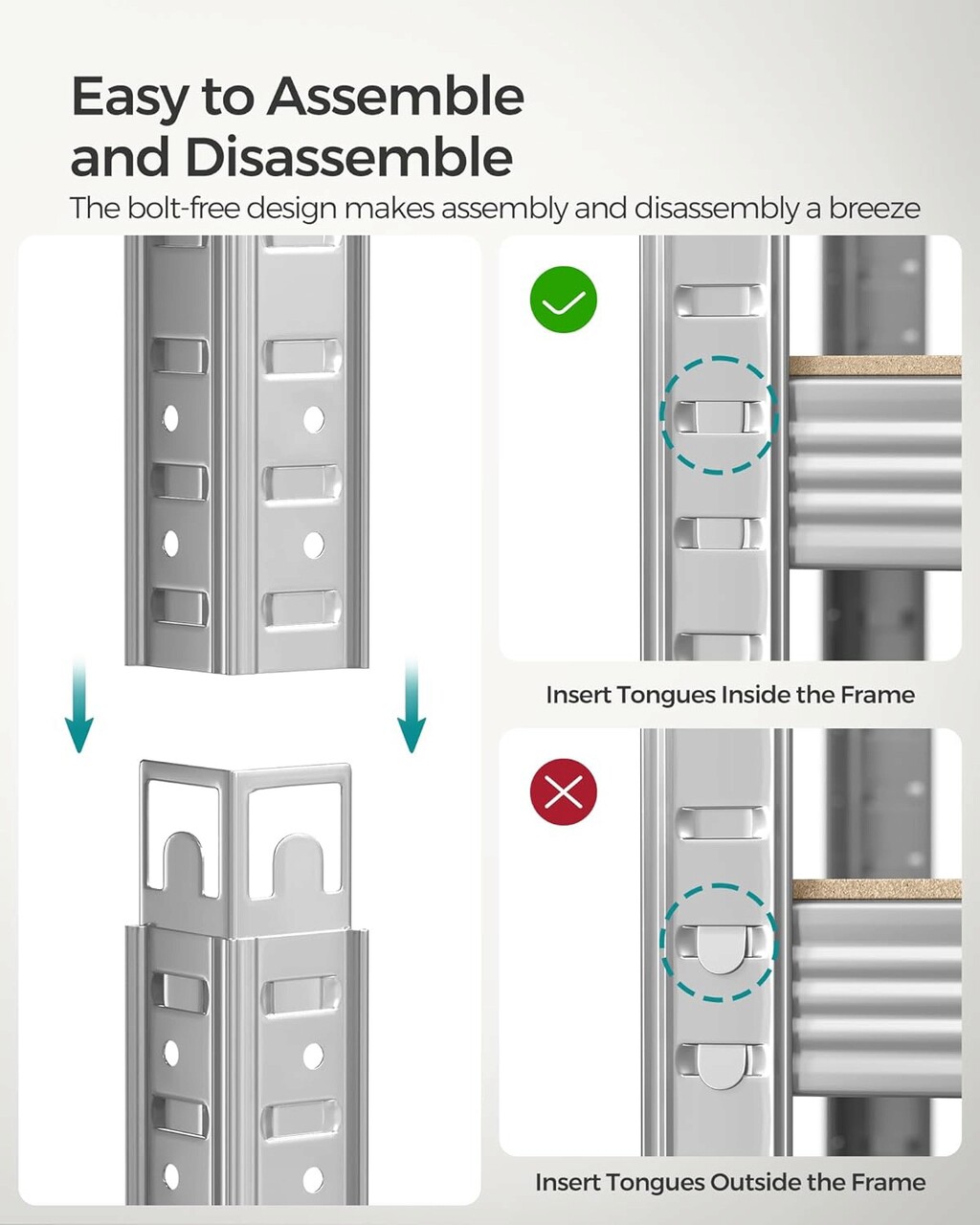 Asamblare usoara Cu un design cu imbinare si instructiuni clare, aceste unitati de rafturi rezistente sunt usor de asamblat si nu necesita unelte